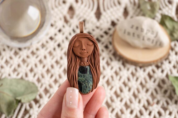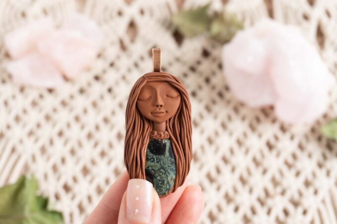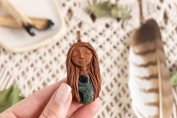 Čarobnica je izdelana iz polimerne gline. Vsak kos je unikaten in na voljo samo en kos. Izdelek lahko minimalno odstopa v barvnih niansah in detajlih, vendar se trudim, da bo vaš izdelek v naravi identičen opisu in fotografiji.