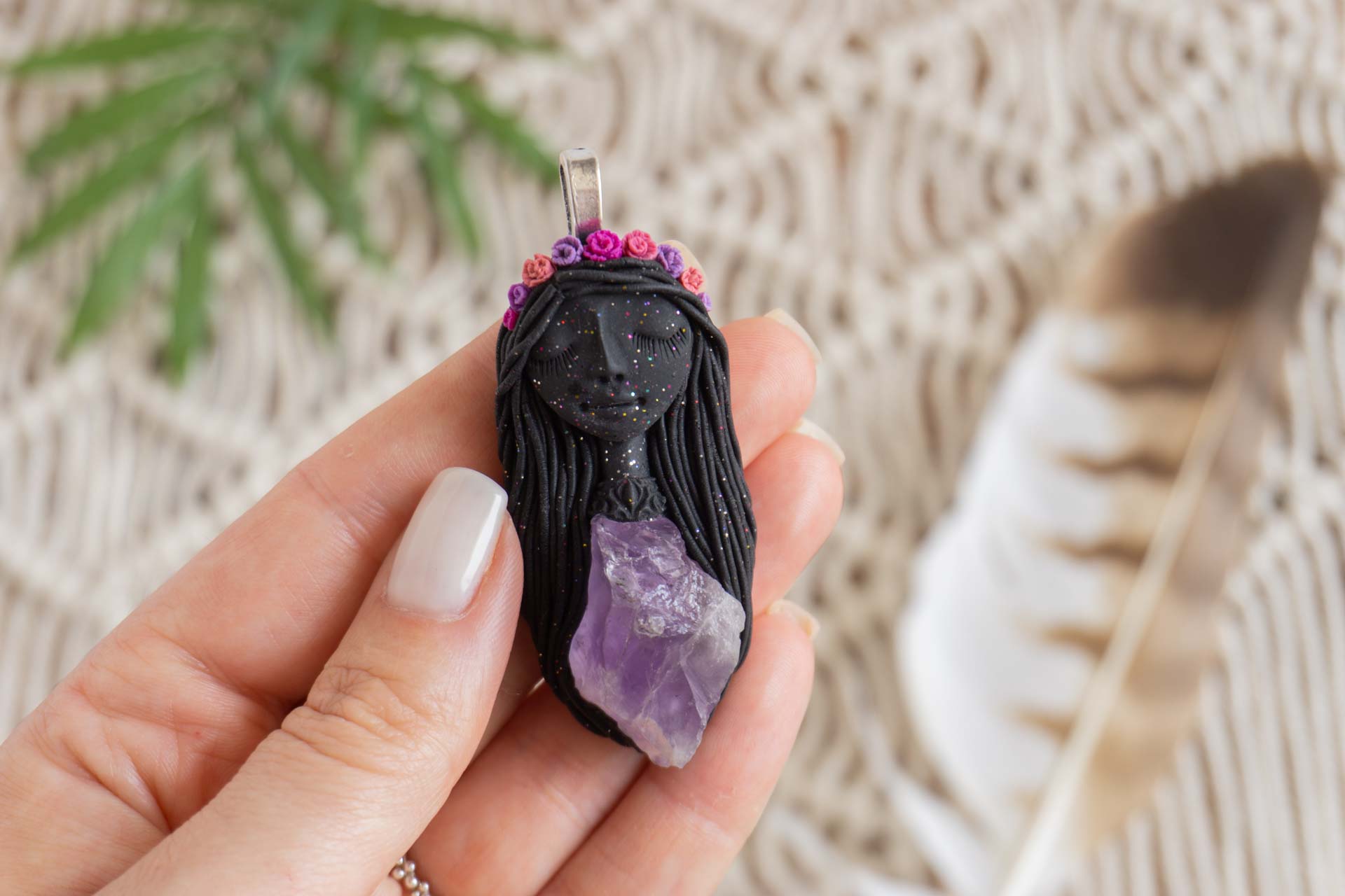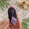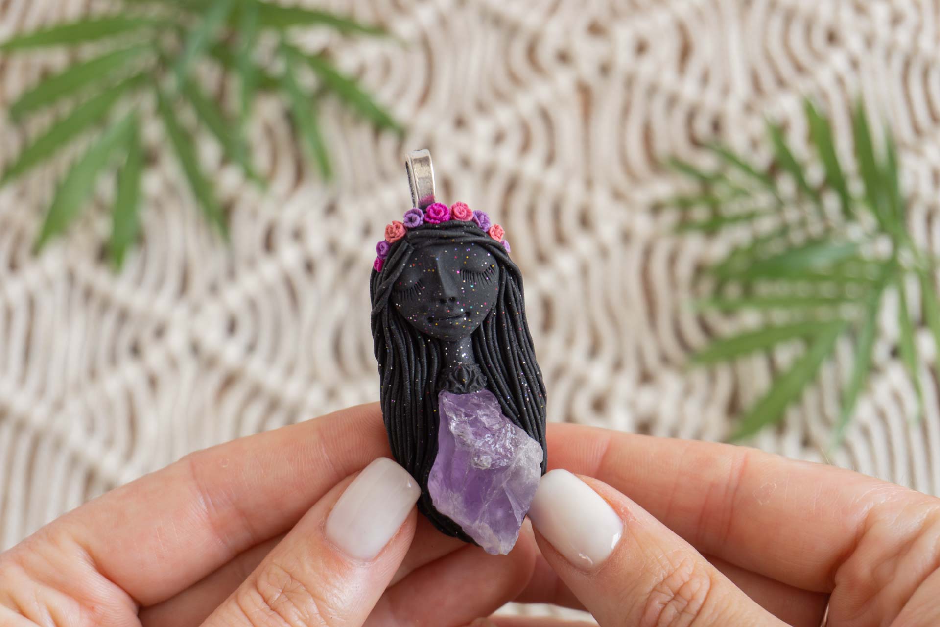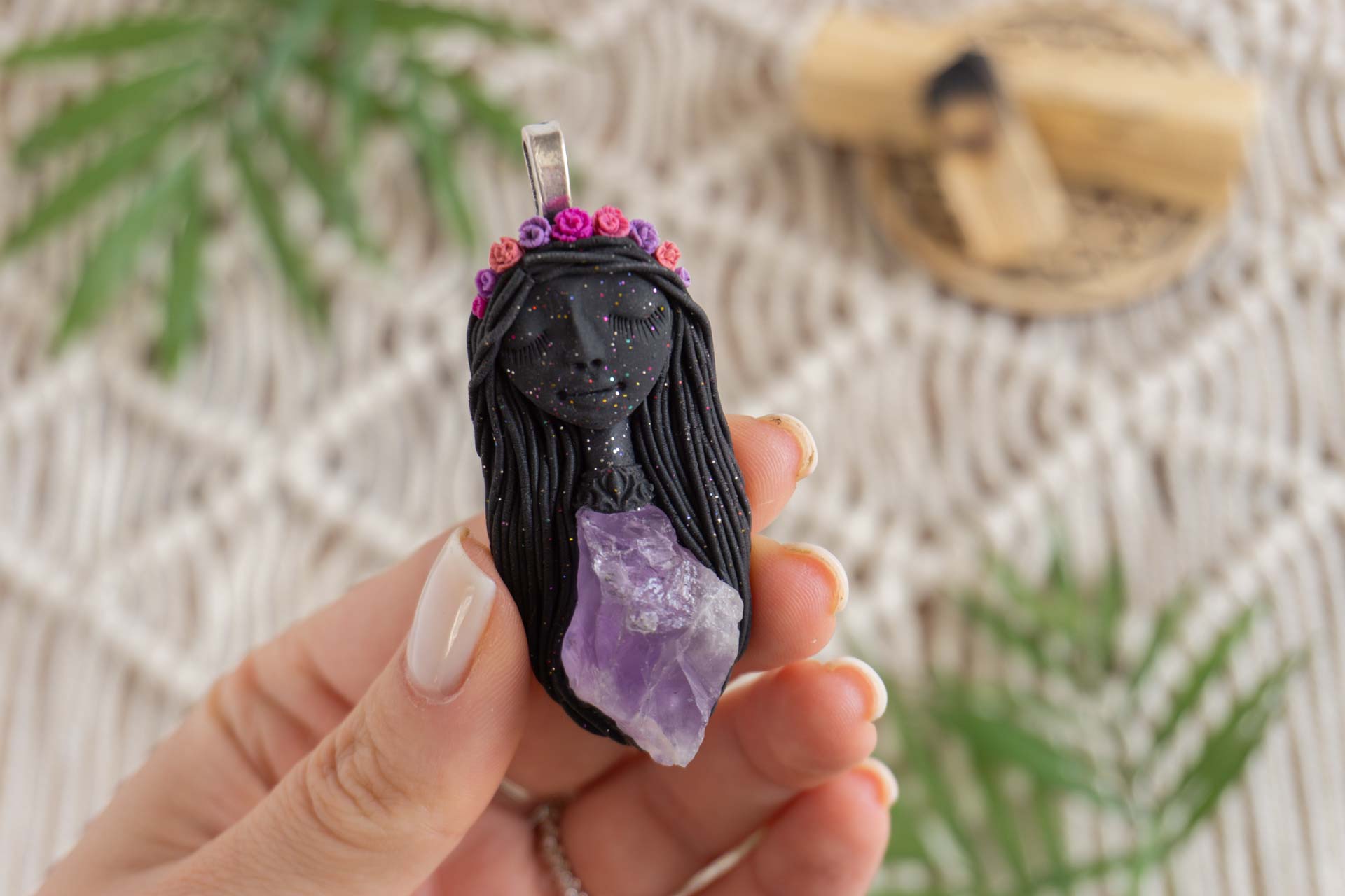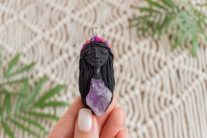 Čarobnica je izdelana iz polimerne gline. Vsak kos je unikaten in na voljo samo en kos. Izdelek lahko minimalno odstopa v barvnih niansah in detajlih, vendar se trudim, da bo vaš izdelek v naravi identičen opisu in fotografiji.