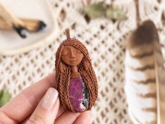 Vsaka Čarobnica je poimenovana po boginjah iz različnih obdobij, kultur in tradicij z vseh koncev sveta. Med izdelavo za vsako Čarobnico posebej povlečem orakelsko karto, ki nosi posebno sporočilo. Z vsako Čarobnico dobite torej še sporočilo, ki ga odkrijete šele, ko odprete paketek.