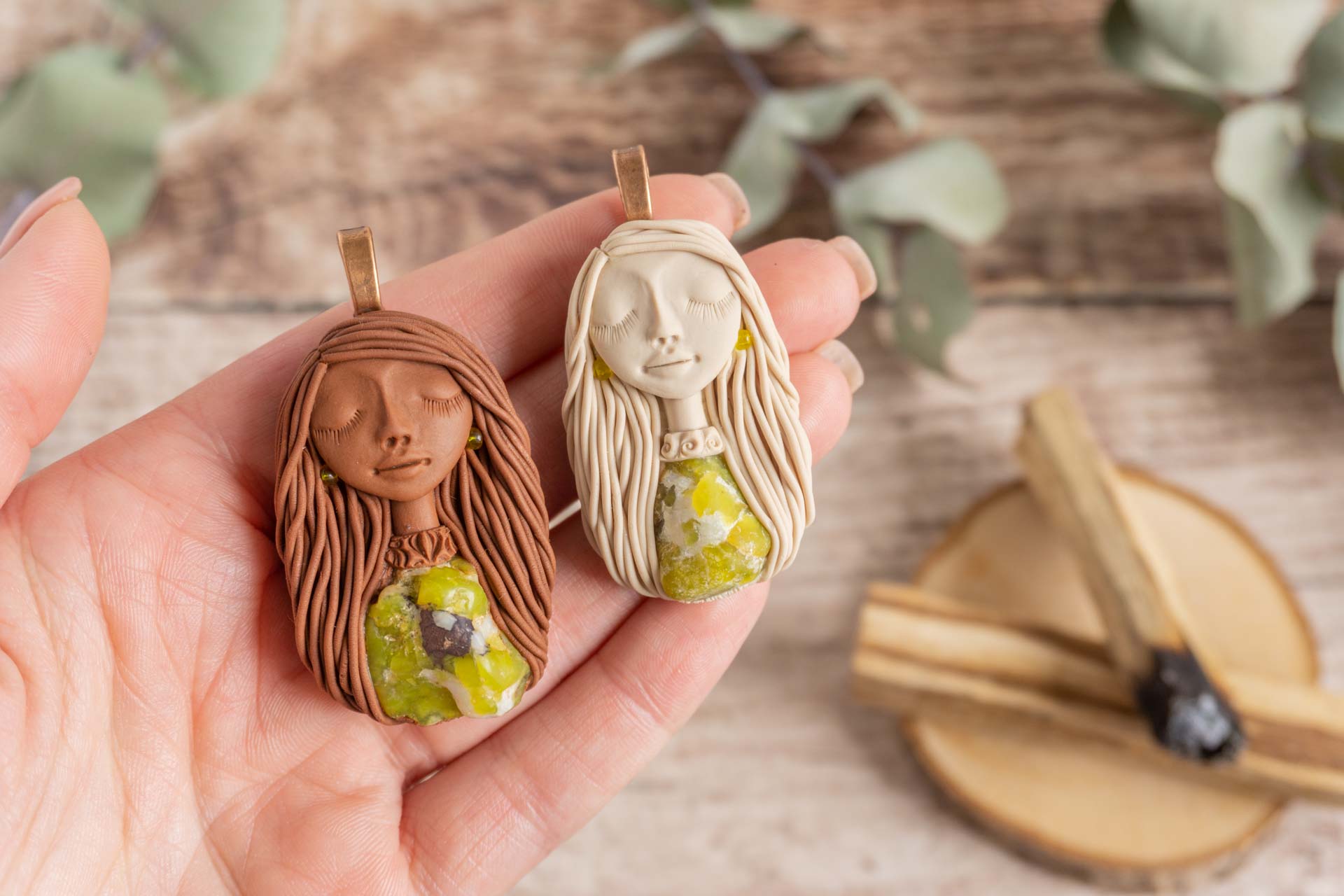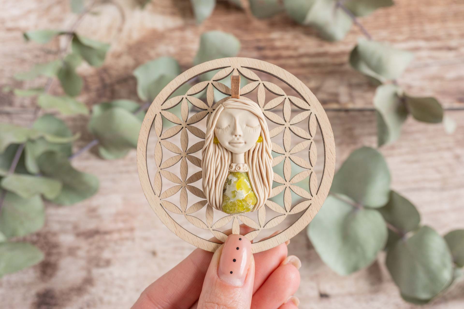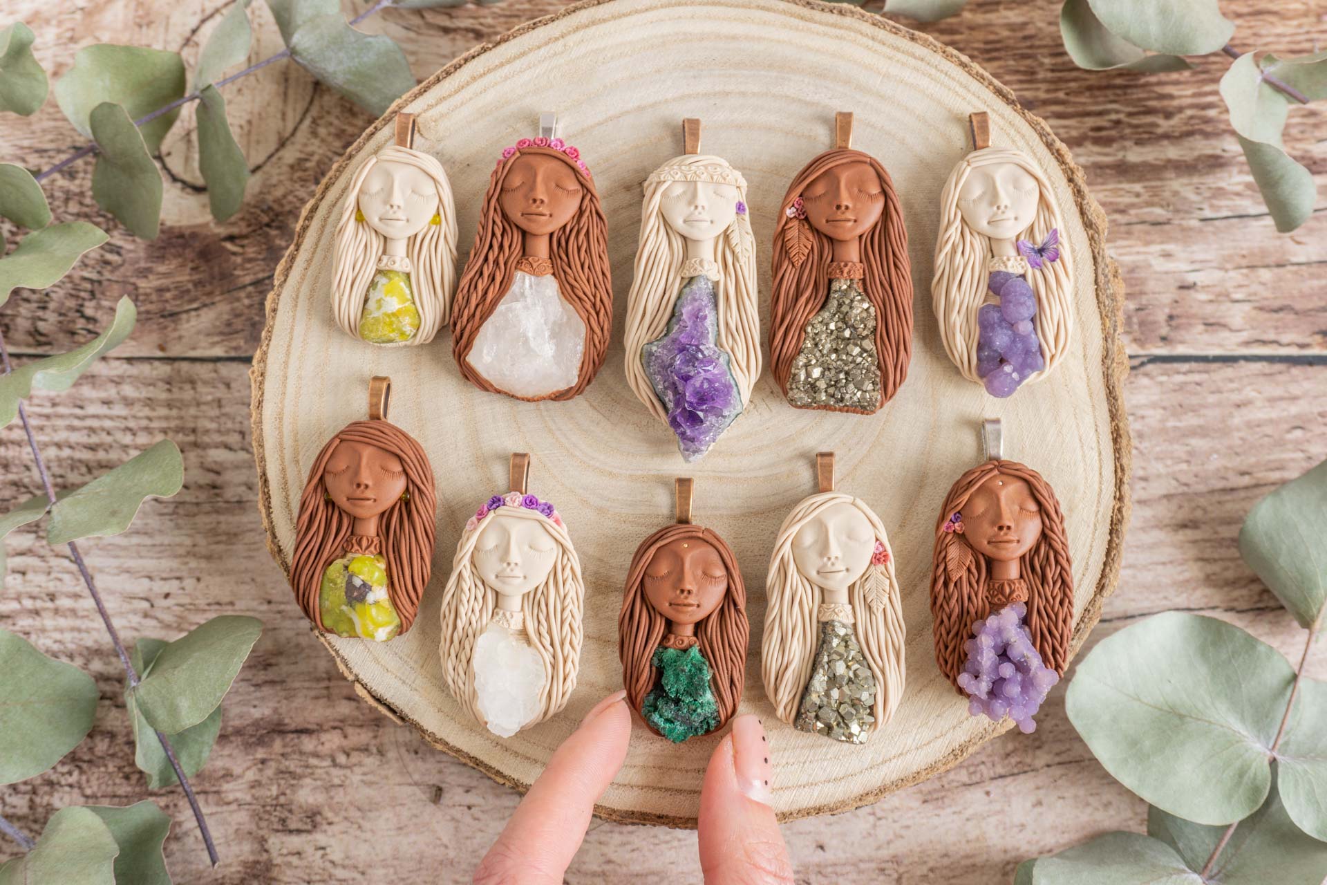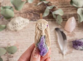 Vsaka Čarobnica je poimenovana po boginjah iz različnih obdobij, kultur in tradicij z vseh koncev sveta. Med izdelavo za vsako Čarobnico posebej povlečem orakelsko karto, ki nosi posebno sporočilo. Z vsako Čarobnico dobite torej še sporočilo, ki ga odkrijete šele, ko odprete paketek.