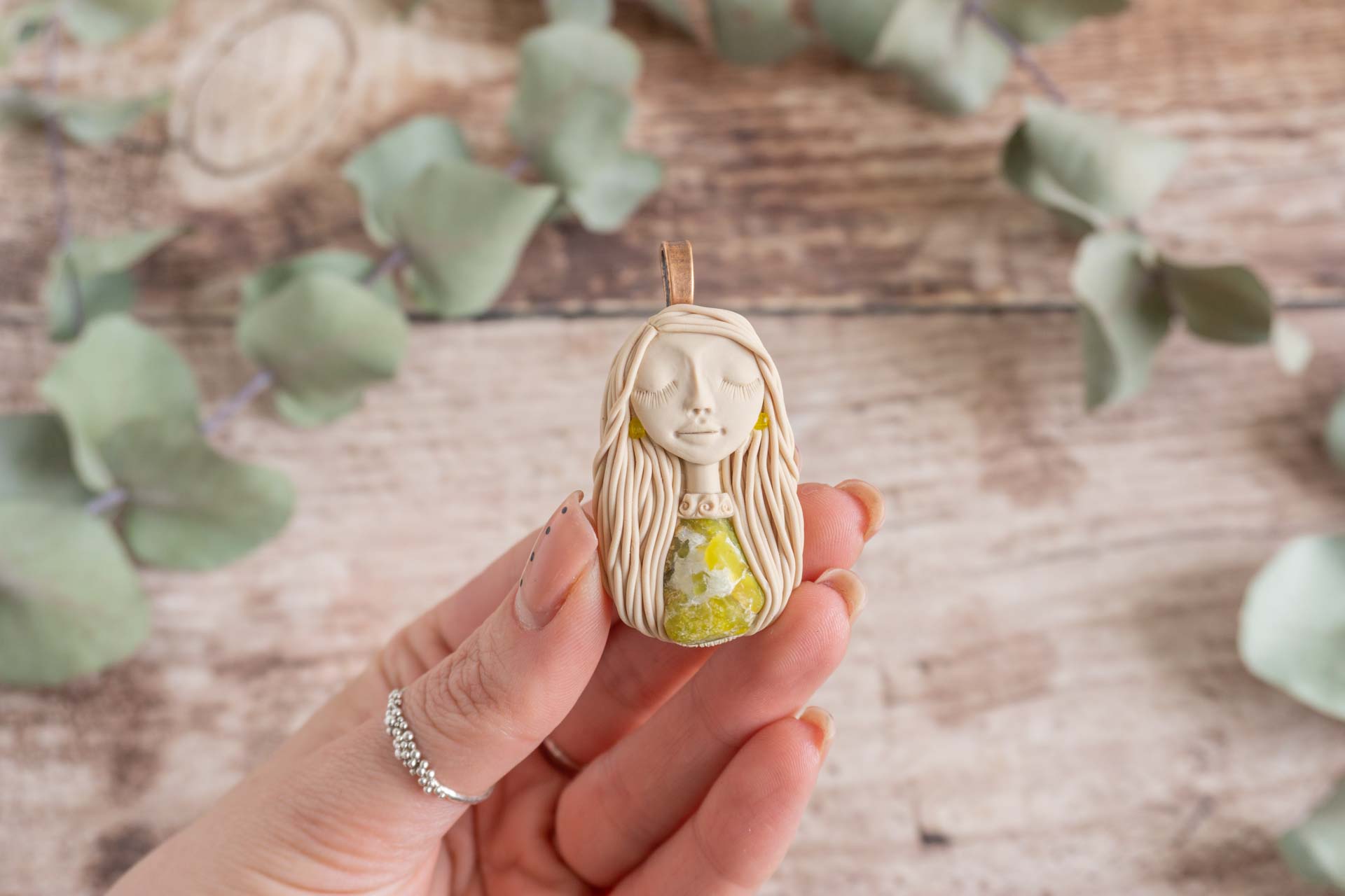 Čarobnica je izdelana iz polimerne gline. Vsak kos je unikaten in na voljo samo en kos. Izdelek lahko minimalno odstopa v barvnih niansah in detajlih, vendar se trudim, da bo vaš izdelek v naravi identičen opisu in fotografiji.