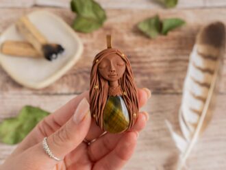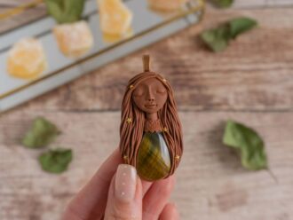 Vsaka Čarobnica je poimenovana po boginjah iz različnih obdobij, kultur in tradicij z vseh koncev sveta. Med izdelavo za vsako Čarobnico posebej povlečem orakelsko karto, ki nosi posebno sporočilo. Z vsako Čarobnico dobite torej še sporočilo, ki ga odkrijete šele, ko odprete paketek.