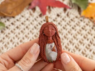 Čarobnica je izdelana iz polimerne gline. Vsak kos je unikaten in na voljo samo en kos. Izdelek lahko minimalno odstopa v barvnih niansah in detajlih, vendar se trudim, da bo vaš izdelek v naravi identičen opisu in fotografiji.
