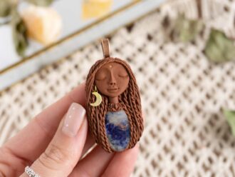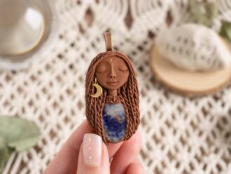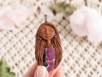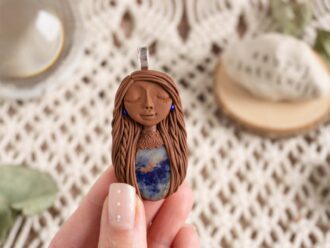 Čarobnica je izdelana iz polimerne gline. Vsak kos je unikaten in na voljo samo en kos. Izdelek lahko minimalno odstopa v barvnih niansah in detajlih, vendar se trudim, da bo vaš izdelek v naravi identičen opisu in fotografiji.