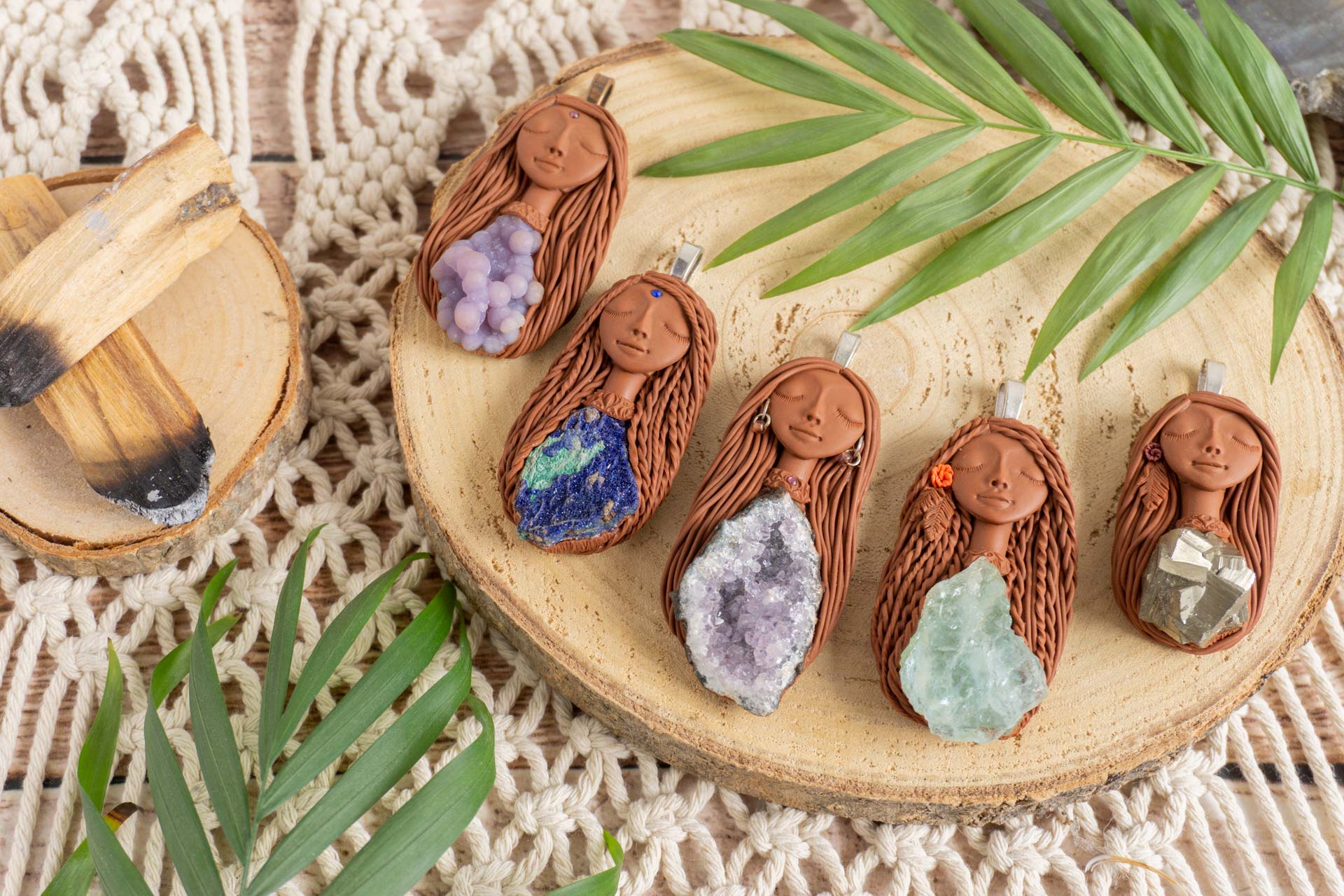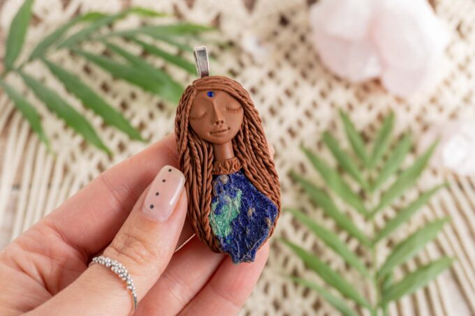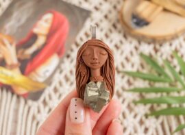 Vsaka Čarobnica je poimenovana po boginjah iz različnih obdobij, kultur in tradicij z vseh koncev sveta. Med izdelavo za vsako Čarobnico posebej povlečem orakelsko karto, ki nosi posebno sporočilo. Z vsako Čarobnico dobite torej še sporočilo, ki ga odkrijete šele, ko odprete paketek.