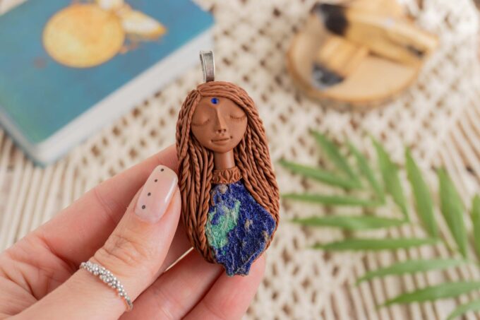 Čarobnica je izdelana iz polimerne gline. Vsak kos je unikaten in na voljo samo en kos. Izdelek lahko minimalno odstopa v barvnih niansah in detajlih, vendar se trudim, da bo vaš izdelek v naravi identičen opisu in fotografiji.