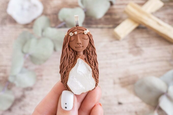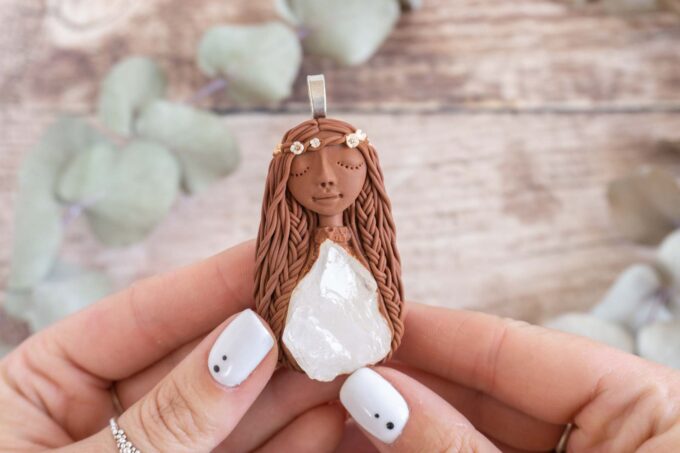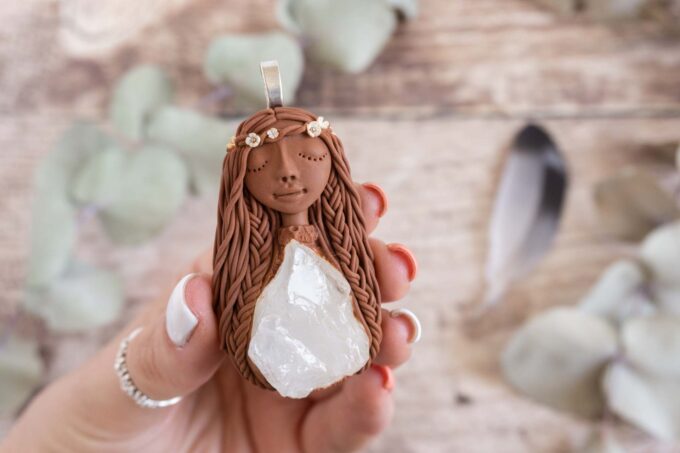 Čarobnica je izdelana iz polimerne gline. Vsak kos je unikaten in na voljo samo en kos. Izdelek lahko minimalno odstopa v barvnih niansah in detajlih, vendar se trudim, da bo vaš izdelek v naravi identičen opisu in fotografiji.