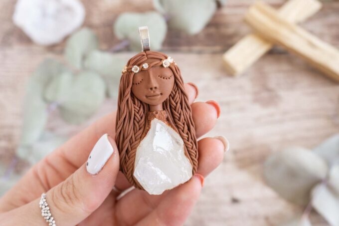 Vsaka Čarobnica je poimenovana po boginjah iz različnih obdobij, kultur in tradicij z vseh koncev sveta. Med izdelavo za vsako Čarobnico posebej povlečem orakelsko karto, ki nosi posebno sporočilo. Z vsako Čarobnico dobite torej še sporočilo, ki ga odkrijete šele, ko odprete paketek.