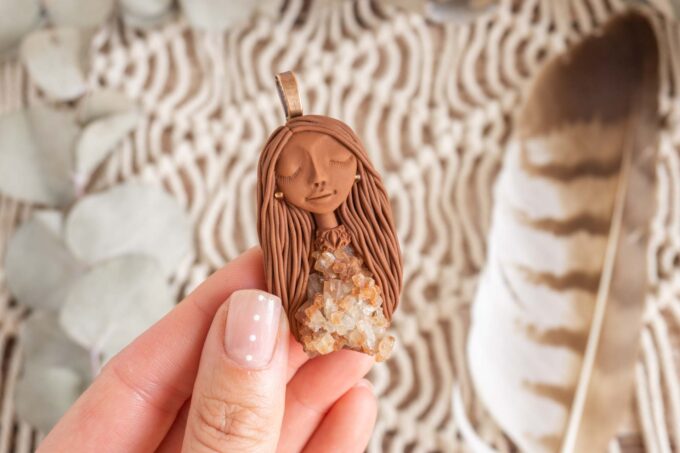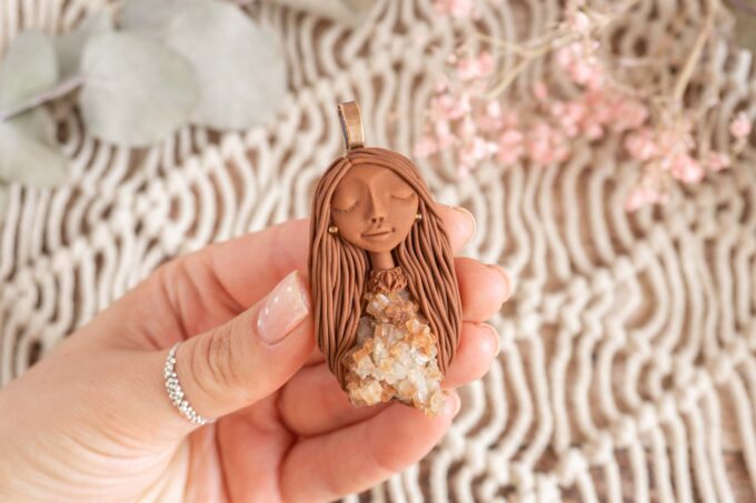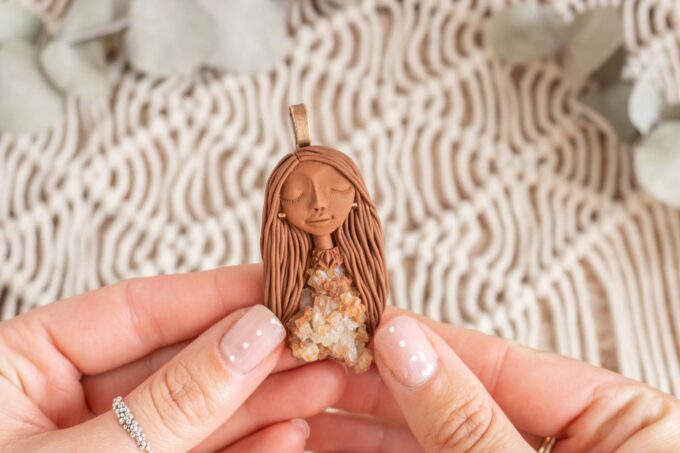 Čarobnica je izdelana iz polimerne gline. Vsak kos je unikaten in na voljo samo en kos. Izdelek lahko minimalno odstopa v barvnih niansah in detajlih, vendar se trudim, da bo vaš izdelek v naravi identičen opisu in fotografiji.