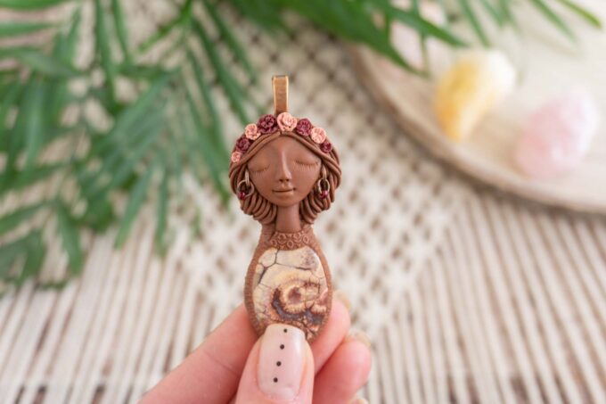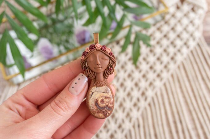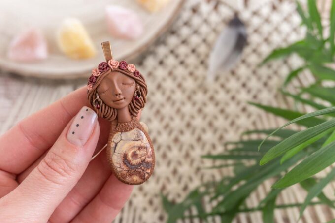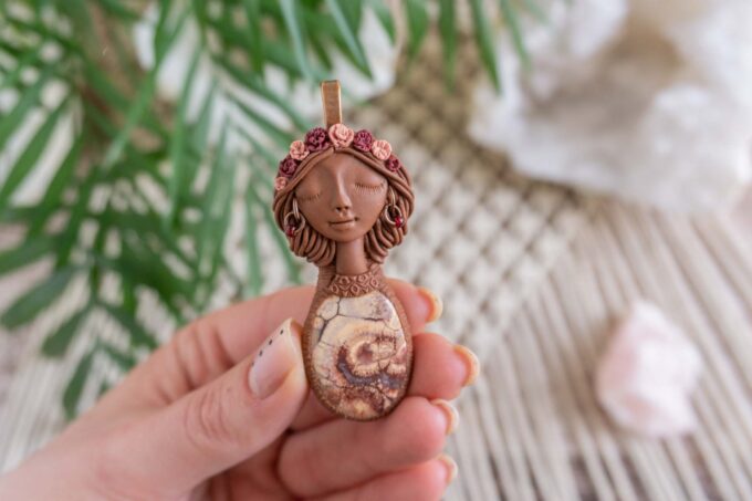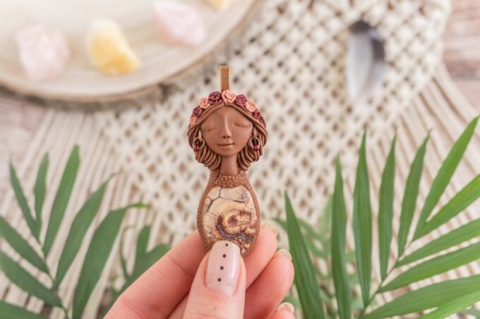 Čarobnica je izdelana iz polimerne gline. Vsak kos je unikaten in na voljo samo en kos. Izdelek lahko minimalno odstopa v barvnih niansah in detajlih, vendar se trudim, da bo vaš izdelek v naravi identičen opisu in fotografiji.