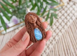 Vsaka Čarobnica je poimenovana po boginjah iz različnih obdobij, kultur in tradicij z vseh koncev sveta. Med izdelavo za vsako Čarobnico posebej povlečem orakelsko karto, ki nosi posebno sporočilo. Z vsako Čarobnico dobite torej še sporočilo, ki ga odkrijete šele, ko odprete paketek.