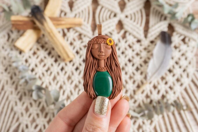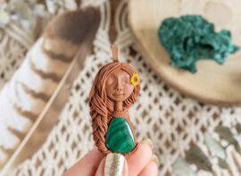 Vsaka Čarobnica je poimenovana po boginjah iz različnih obdobij, kultur in tradicij z vseh koncev sveta. Med izdelavo za vsako Čarobnico posebej povlečem orakelsko karto, ki nosi posebno sporočilo. Z vsako Čarobnico dobite torej še sporočilo, ki ga odkrijete šele, ko odprete paketek.