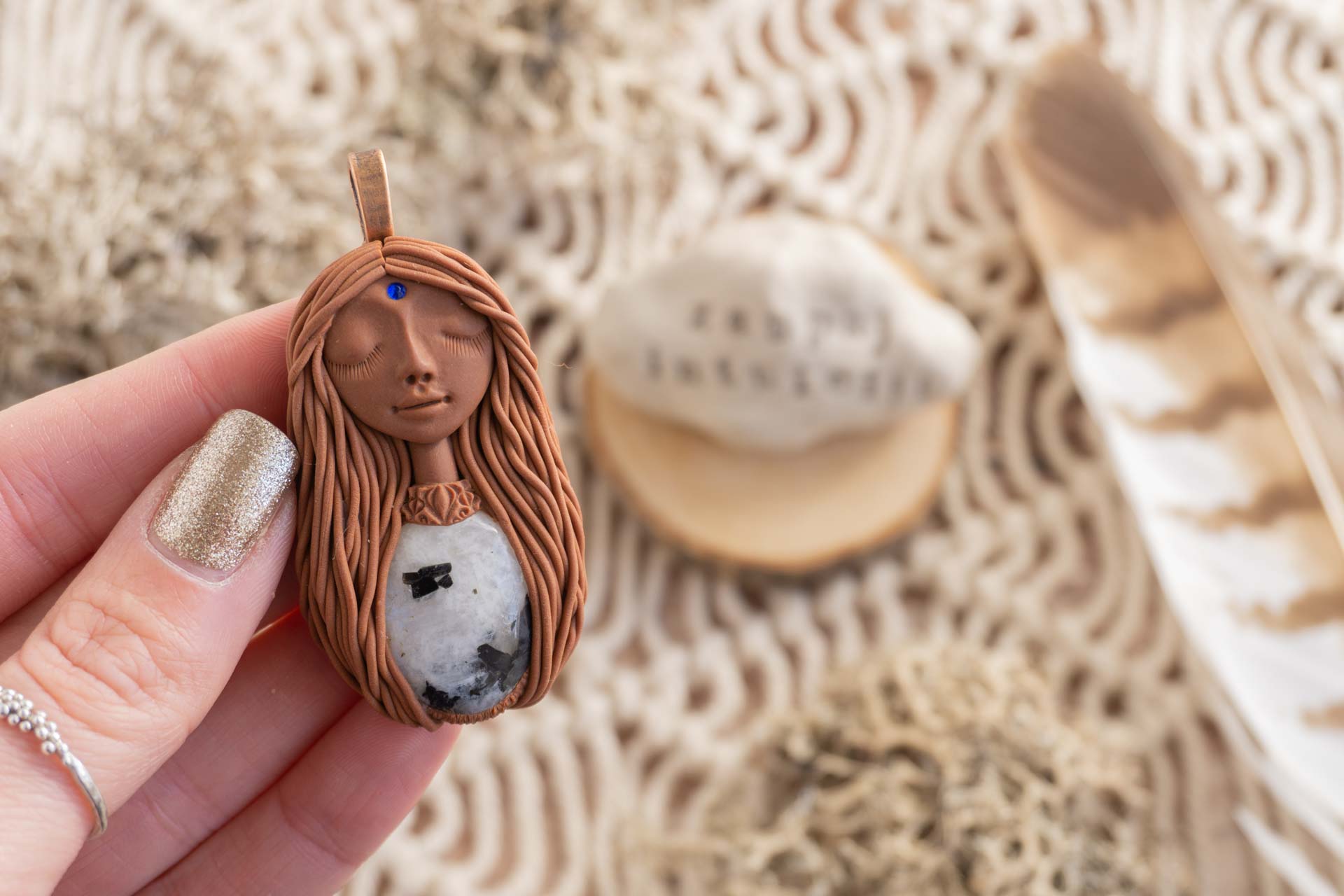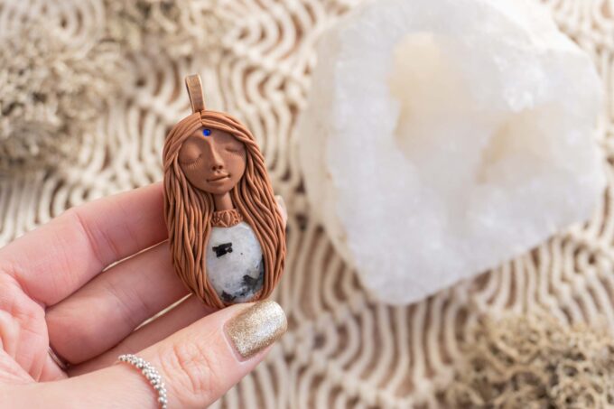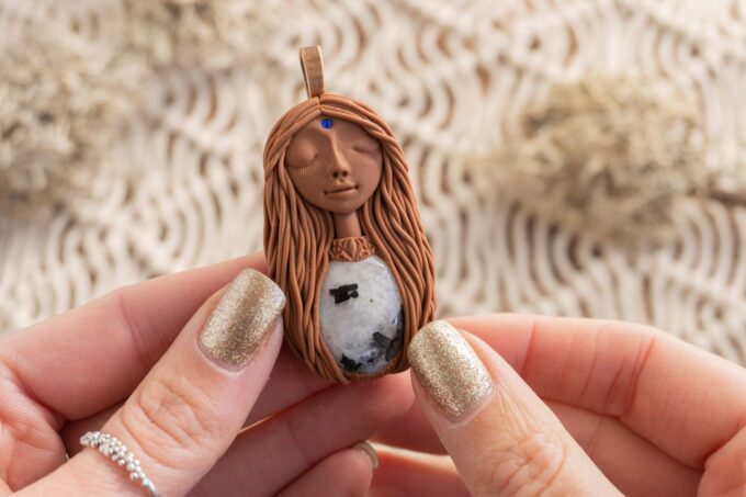 Čarobnica je izdelana iz polimerne gline. Vsak kos je unikaten in na voljo samo en kos. Izdelek lahko minimalno odstopa v barvnih niansah in detajlih, vendar se trudim, da bo vaš izdelek v naravi identičen opisu in fotografiji.