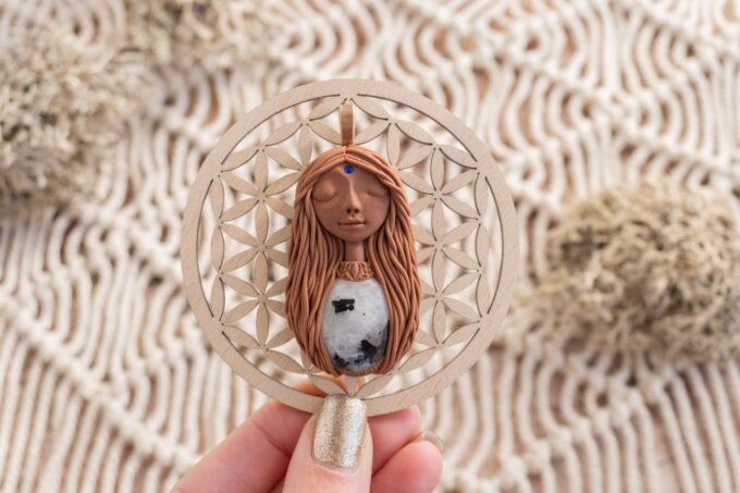 Vsaka Čarobnica je poimenovana po boginjah iz različnih obdobij, kultur in tradicij z vseh koncev sveta. Med izdelavo za vsako Čarobnico posebej povlečem orakelsko karto, ki nosi posebno sporočilo. Z vsako Čarobnico dobite torej še sporočilo, ki ga odkrijete šele, ko odprete paketek.