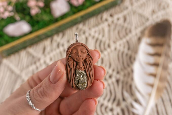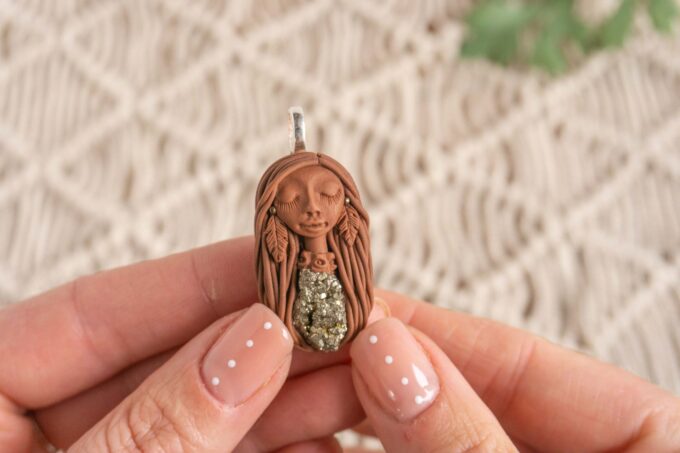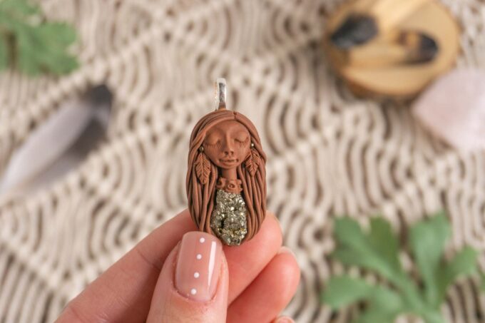 Čarobnica je izdelana iz polimerne gline. Vsak kos je unikaten in na voljo samo en kos. Izdelek lahko minimalno odstopa v barvnih niansah in detajlih, vendar se trudim, da bo vaš izdelek v naravi identičen opisu in fotografiji.