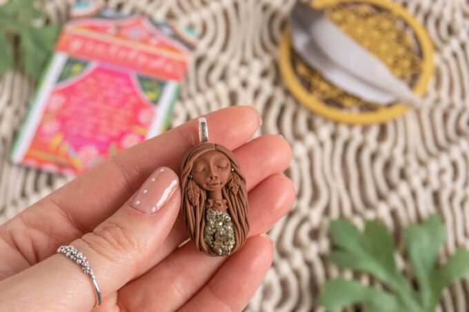 Vsaka Čarobnica je poimenovana po boginjah iz različnih obdobij, kultur in tradicij z vseh koncev sveta. Med izdelavo za vsako Čarobnico posebej povlečem orakelsko karto, ki nosi posebno sporočilo. Z vsako Čarobnico dobite torej še sporočilo, ki ga odkrijete šele, ko odprete paketek.