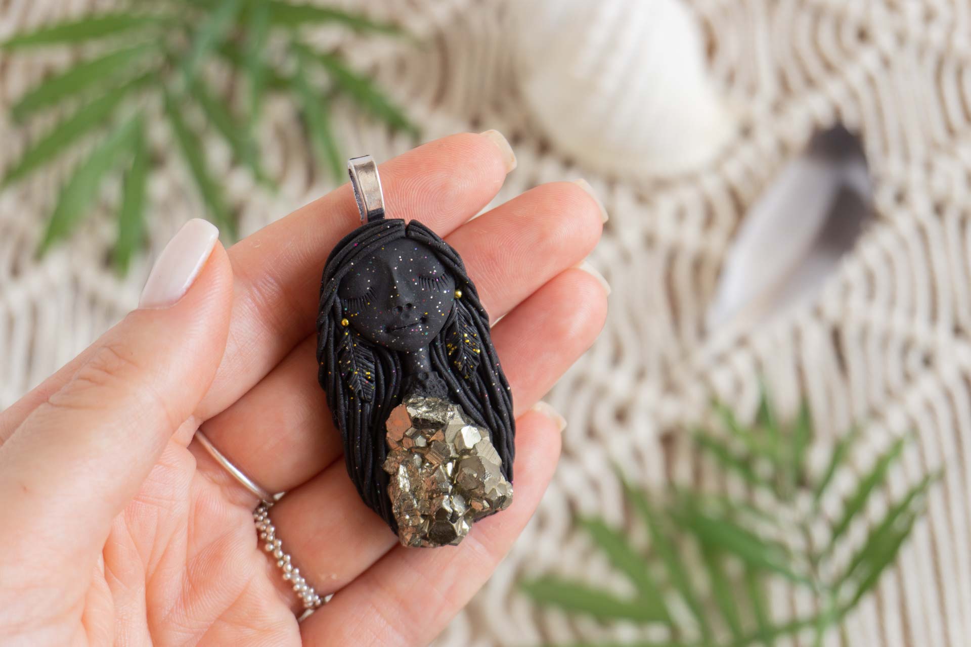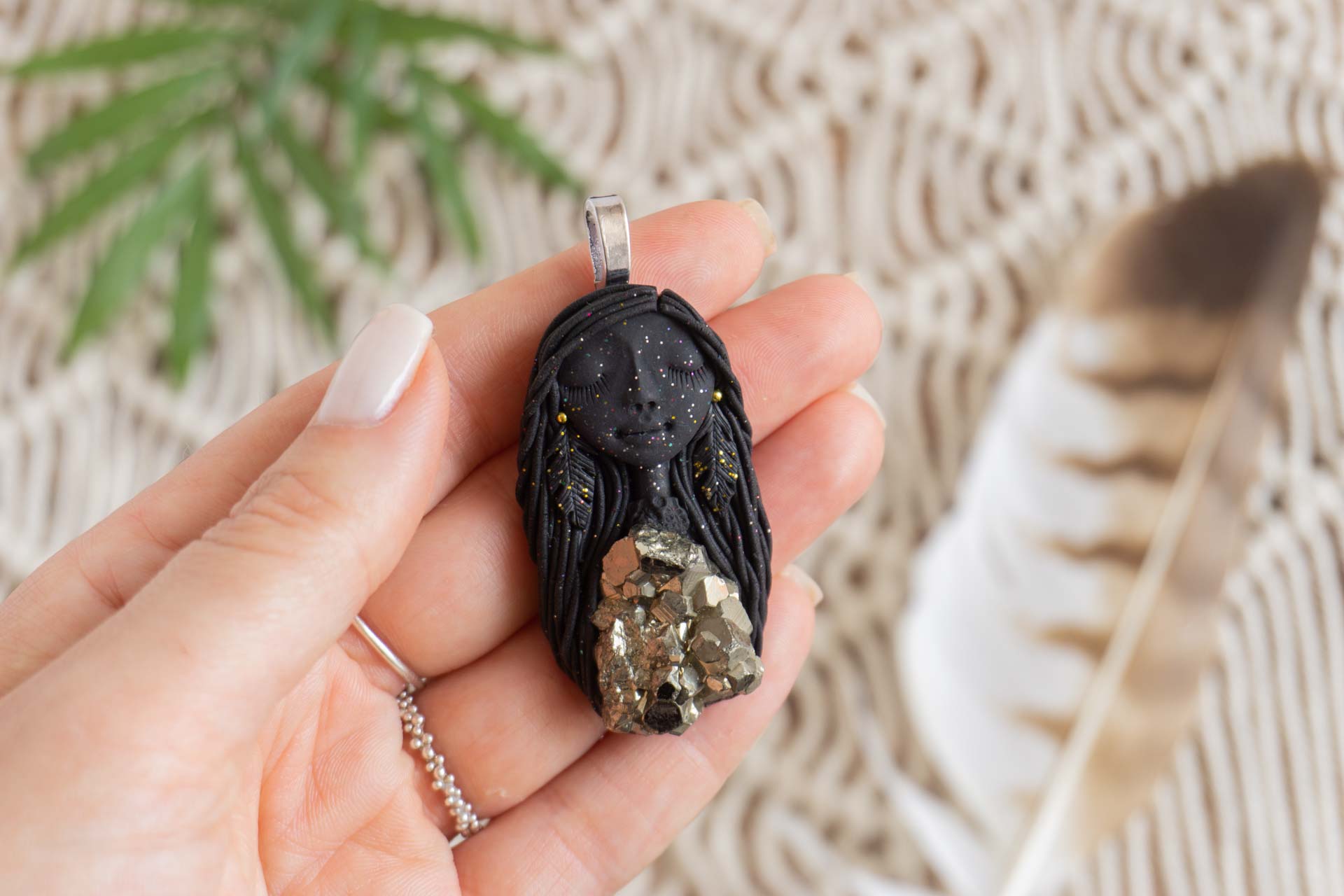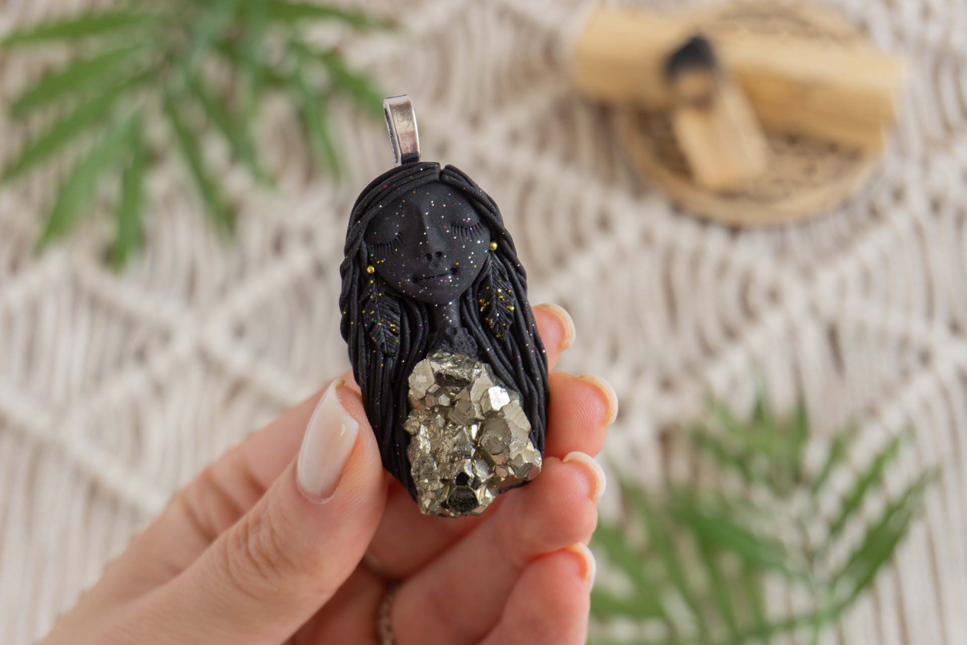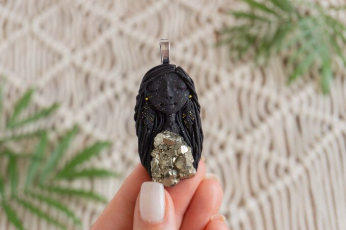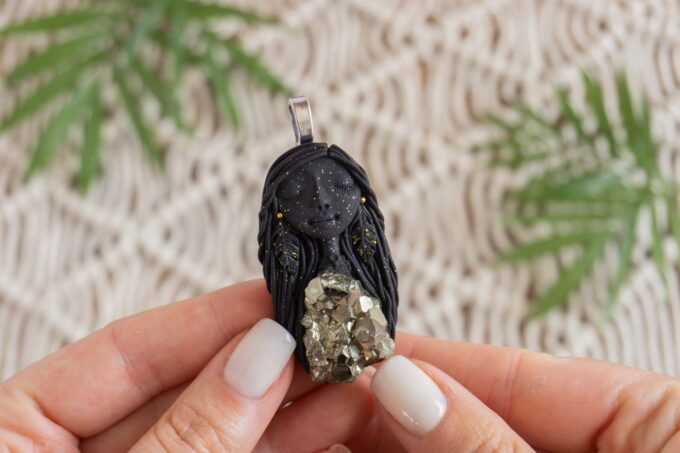 Čarobnica je izdelana iz polimerne gline. Vsak kos je unikaten in na voljo samo en kos. Izdelek lahko minimalno odstopa v barvnih niansah in detajlih, vendar se trudim, da bo vaš izdelek v naravi identičen opisu in fotografiji.