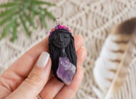 Vsaka Čarobnica je poimenovana po boginjah iz različnih obdobij, kultur in tradicij z vseh koncev sveta. Med izdelavo za vsako Čarobnico posebej povlečem orakelsko karto, ki nosi posebno sporočilo. Z vsako Čarobnico dobite torej še sporočilo, ki ga odkrijete šele, ko odprete paketek.