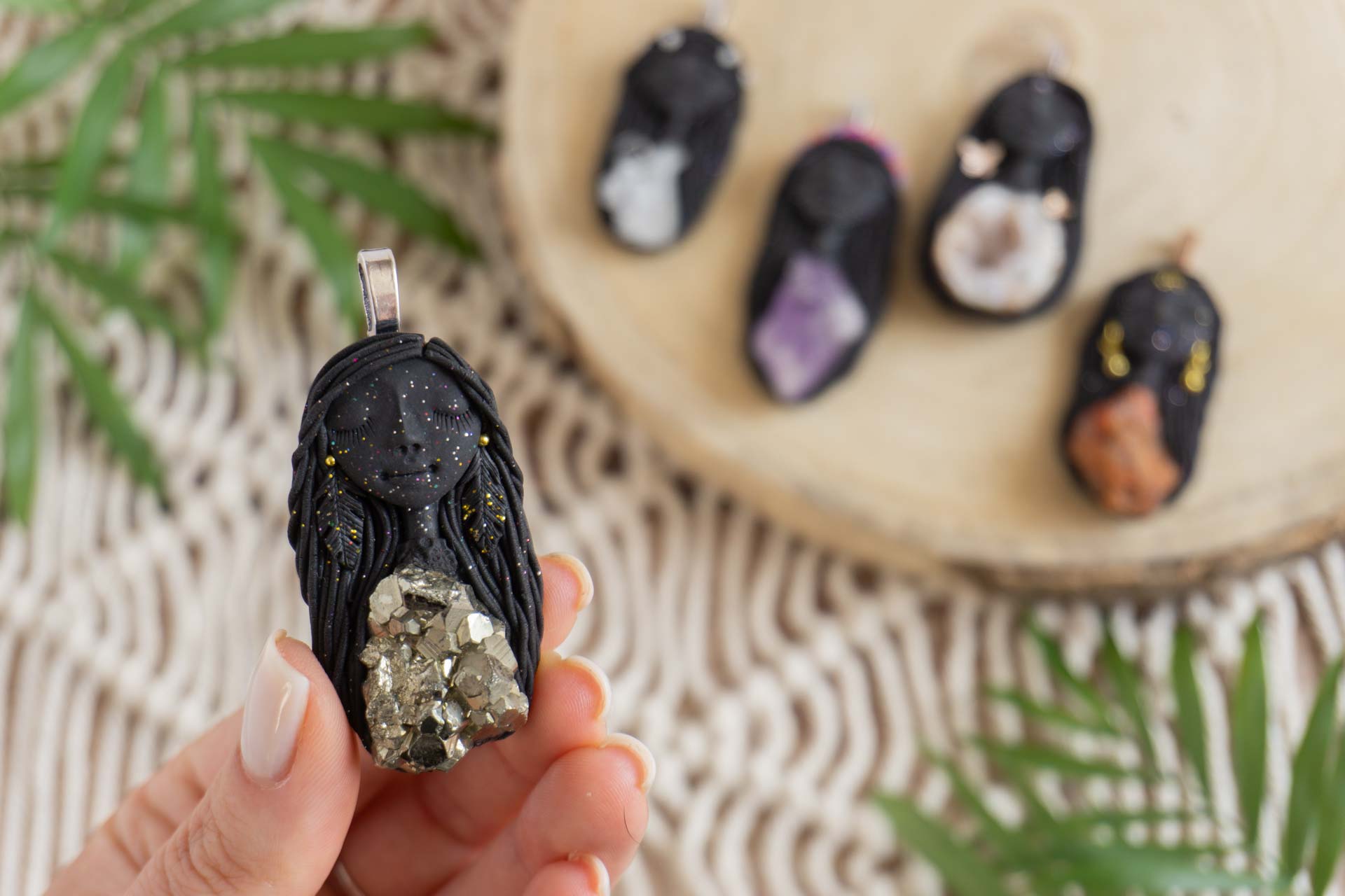 Čarobnice vsebujejo kristale in poldrage kamne. Vsak izdelek je unikaten in ima posebno zgodbo. Tako kot nas določeni kamni pritegnejo in se povežejo z našo energijo, tako tudi Čarobnice iščejo svoje lastnike. Čarobnico si izberete intuitivno ali pa na podlagi kamna, ki ga vsebuje.