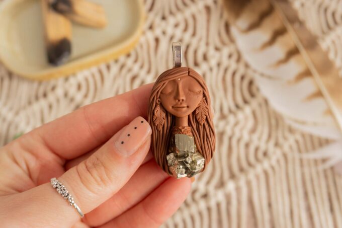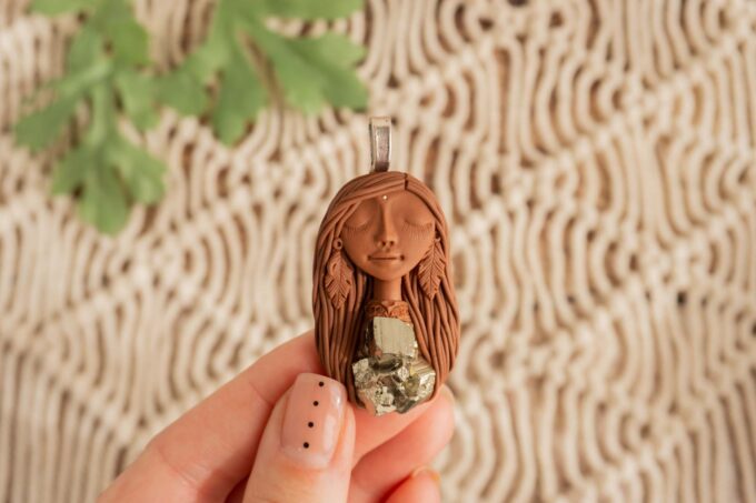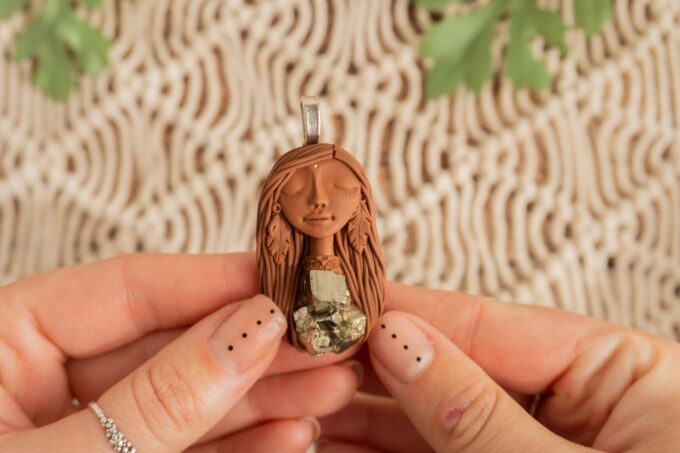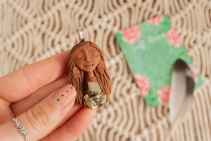Čarobnica je izdelana iz polimerne gline. Vsak kos je unikaten in na voljo samo en kos. Izdelek lahko minimalno odstopa v barvnih niansah in detajlih, vendar se trudim, da bo vaš izdelek v naravi identičen opisu in fotografiji.
