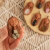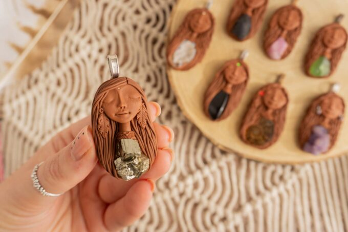 Vsaka Čarobnica je poimenovana po boginjah iz različnih obdobij, kultur in tradicij z vseh koncev sveta. Med izdelavo za vsako Čarobnico posebej povlečem orakelsko karto, ki nosi posebno sporočilo. Z vsako Čarobnico dobite torej še sporočilo, ki ga odkrijete šele, ko odprete paketek.