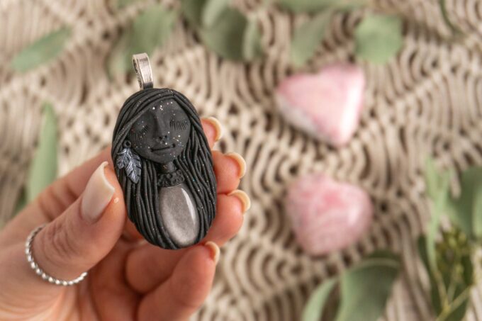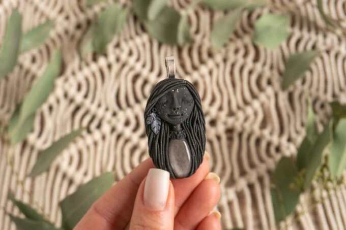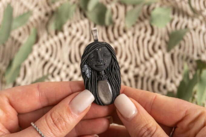 Čarobnica je izdelana iz polimerne gline. Vsak kos je unikaten in na voljo samo en kos. Izdelek lahko minimalno odstopa v barvnih niansah in detajlih, vendar se trudim, da bo vaš izdelek v naravi identičen opisu in fotografiji.