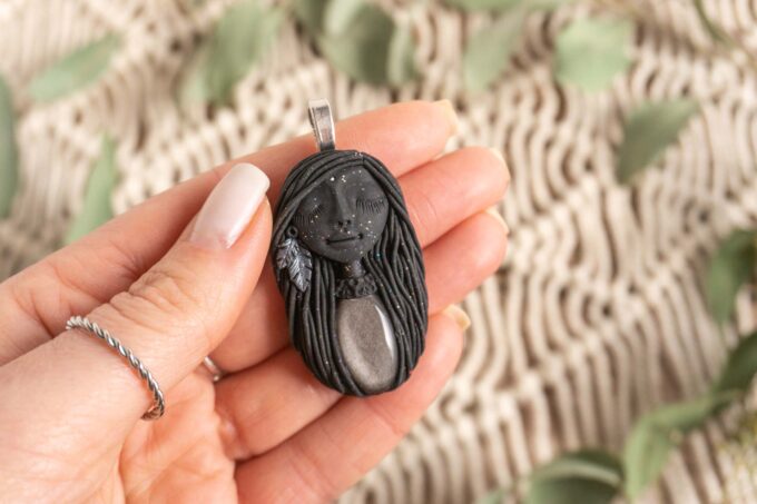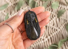Vsaka Čarobnica je poimenovana po boginjah iz različnih obdobij, kultur in tradicij z vseh koncev sveta. Med izdelavo za vsako Čarobnico posebej povlečem orakelsko karto, ki nosi posebno sporočilo. Z vsako Čarobnico dobite torej še sporočilo, ki ga odkrijete šele, ko odprete paketek.