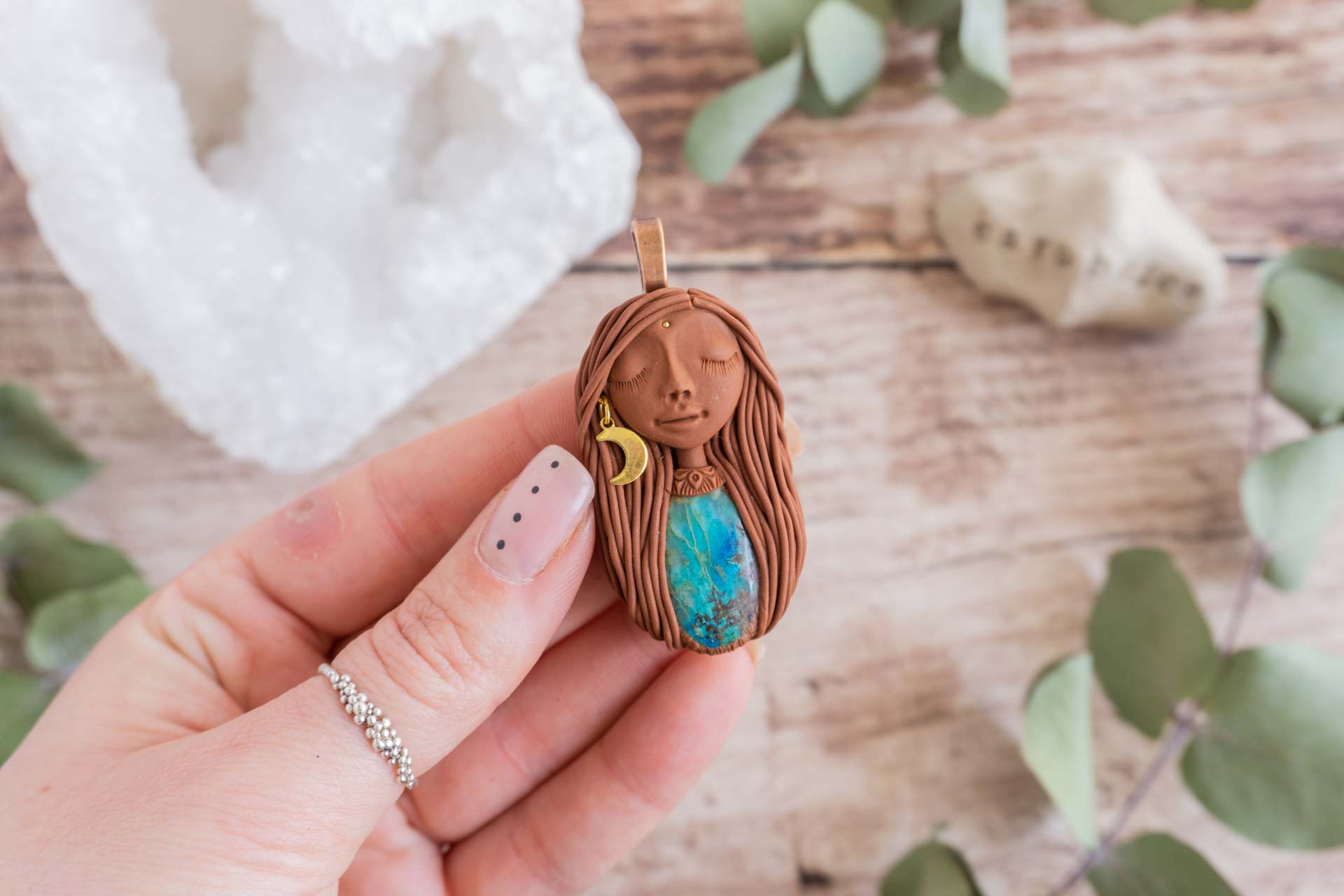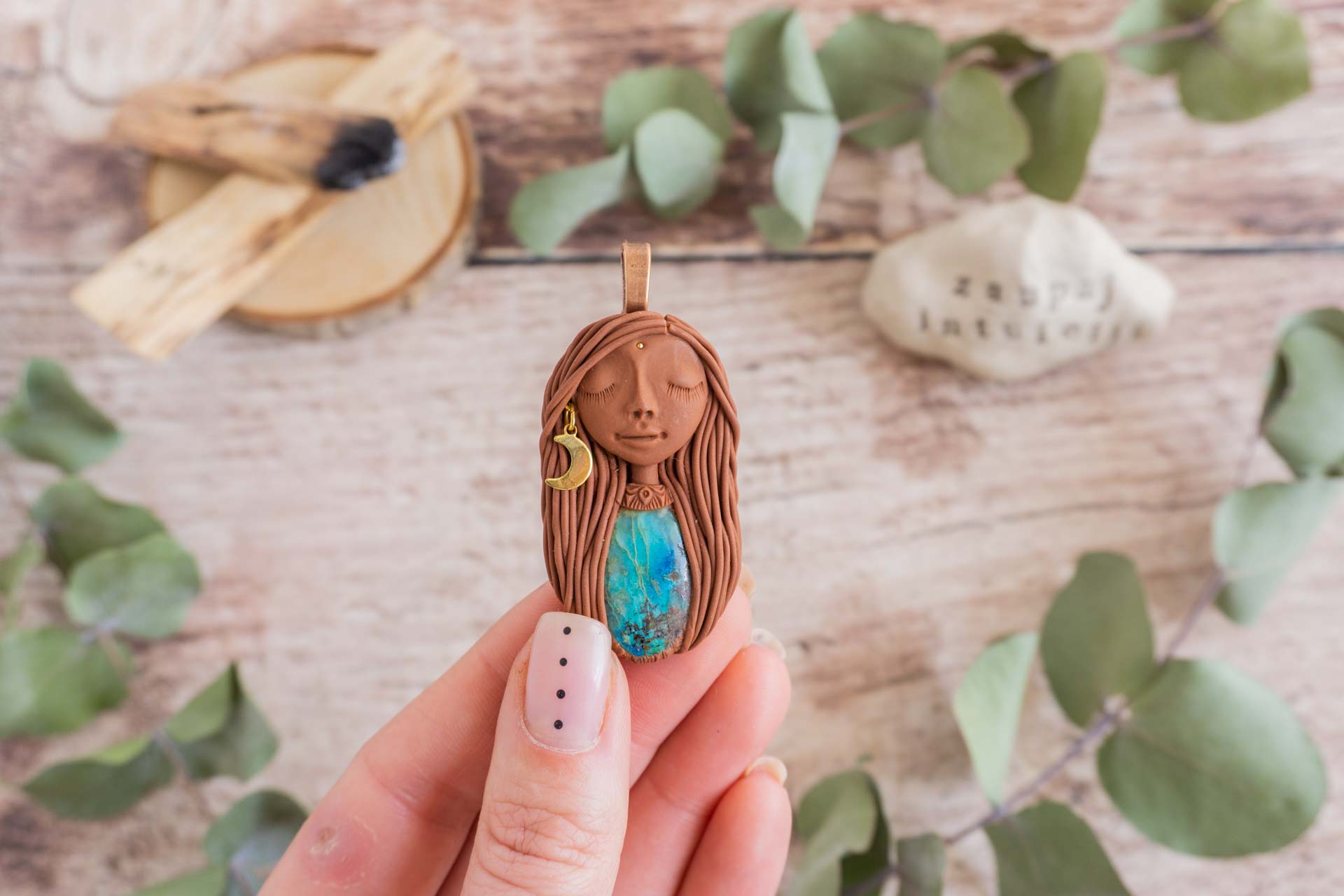 Vsaka Čarobnica je poimenovana po boginjah iz različnih obdobij, kultur in tradicij z vseh koncev sveta. Med izdelavo za vsako Čarobnico posebej povlečem orakelsko karto, ki nosi posebno sporočilo. Z vsako Čarobnico dobite torej še sporočilo, ki ga odkrijete šele, ko odprete paketek.