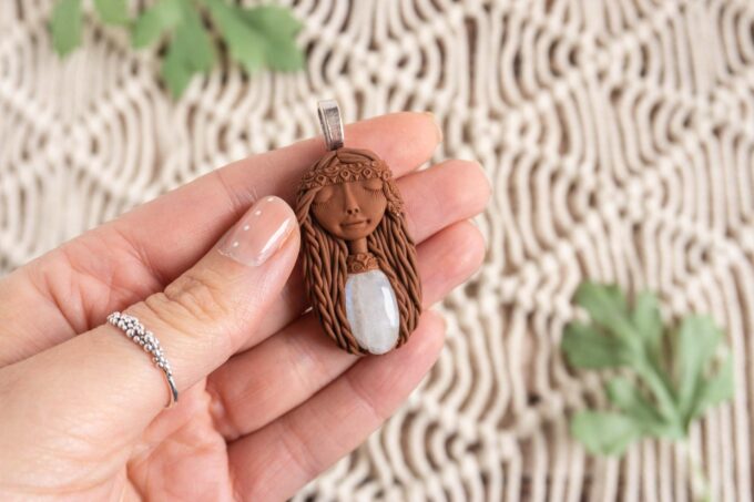 Čarobnica je izdelana iz polimerne gline. Vsak kos je unikaten in na voljo samo en kos. Izdelek lahko minimalno odstopa v barvnih niansah in detajlih, vendar se trudim, da bo vaš izdelek v naravi identičen opisu in fotografiji.
