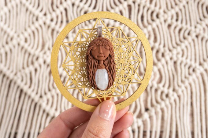 Vsaka Čarobnica je poimenovana po boginjah iz različnih obdobij, kultur in tradicij z vseh koncev sveta. Med izdelavo za vsako Čarobnico posebej povlečem orakelsko karto, ki nosi posebno sporočilo. Z vsako Čarobnico dobite torej še sporočilo, ki ga odkrijete šele, ko odprete paketek.