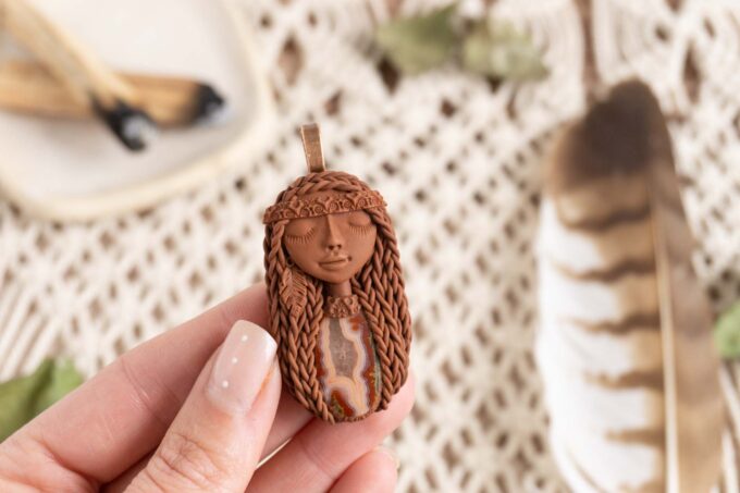 Čarobnica je izdelana iz polimerne gline. Vsak kos je unikaten in na voljo samo en kos. Izdelek lahko minimalno odstopa v barvnih niansah in detajlih, vendar se trudim, da bo vaš izdelek v naravi identičen opisu in fotografiji.