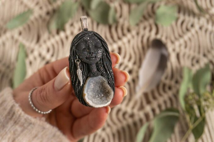 Vsaka Čarobnica je poimenovana po boginjah iz različnih obdobij, kultur in tradicij z vseh koncev sveta. Med izdelavo za vsako Čarobnico posebej povlečem orakelsko karto, ki nosi posebno sporočilo. Z vsako Čarobnico dobite torej še sporočilo, ki ga odkrijete šele, ko odprete paketek.