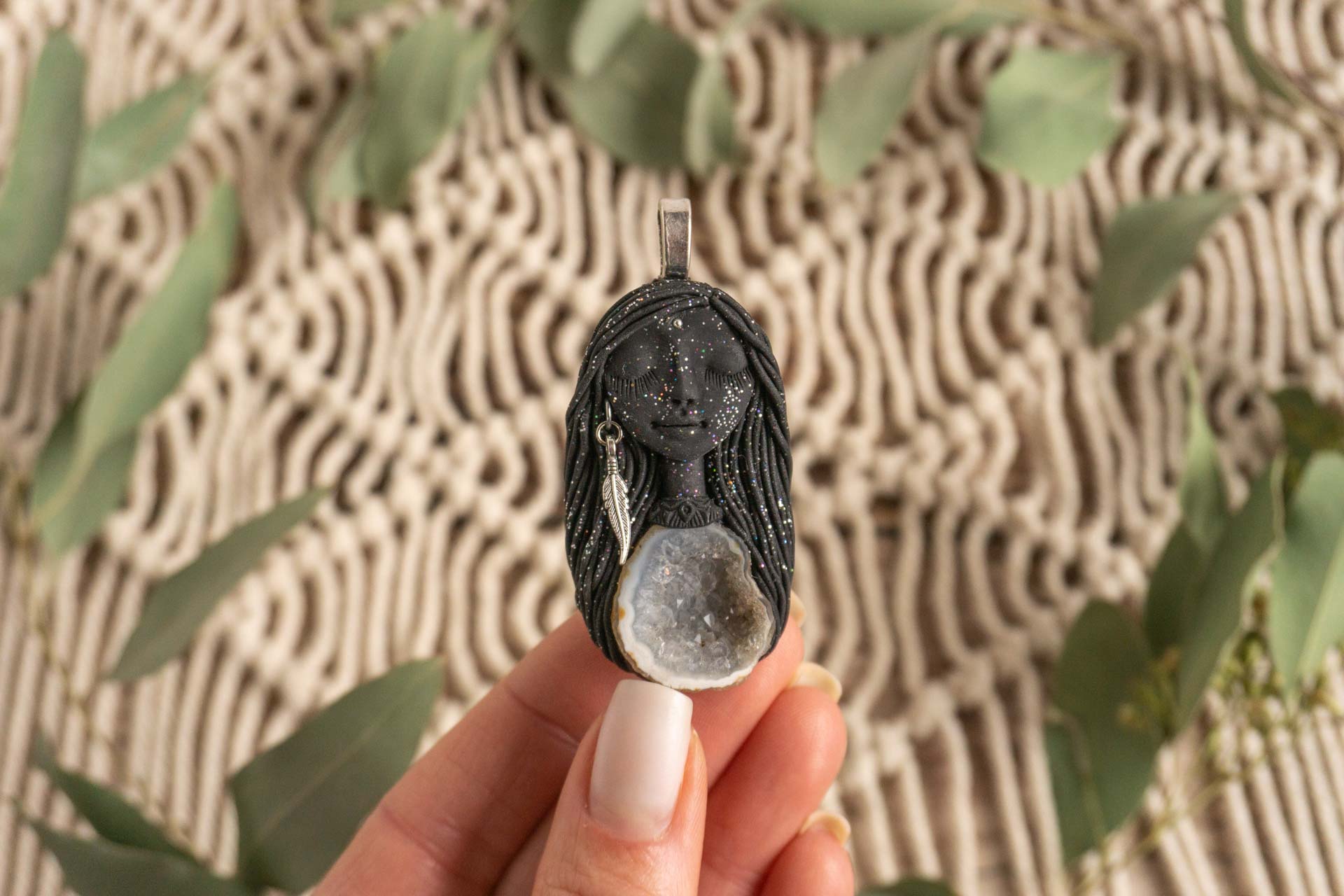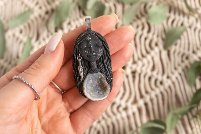 Čarobnica je izdelana iz polimerne gline. Vsak kos je unikaten in na voljo samo en kos. Izdelek lahko minimalno odstopa v barvnih niansah in detajlih, vendar se trudim, da bo vaš izdelek v naravi identičen opisu in fotografiji.