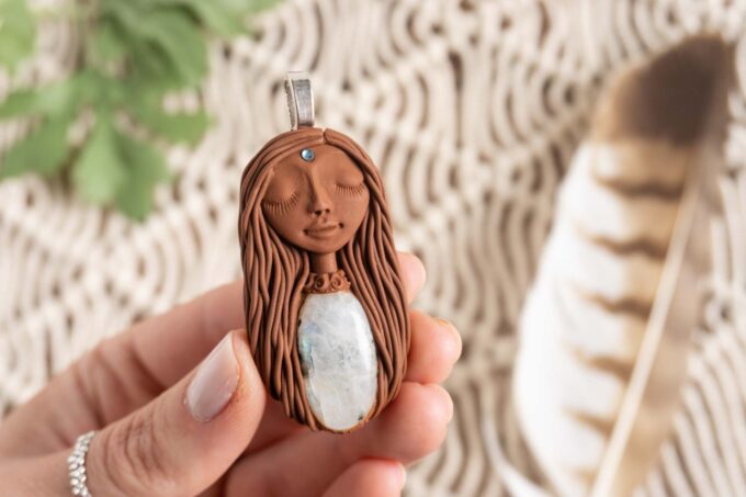 Čarobnica je izdelana iz polimerne gline. Vsak kos je unikaten in na voljo samo en kos. Izdelek lahko minimalno odstopa v barvnih niansah in detajlih, vendar se trudim, da bo vaš izdelek v naravi identičen opisu in fotografiji.