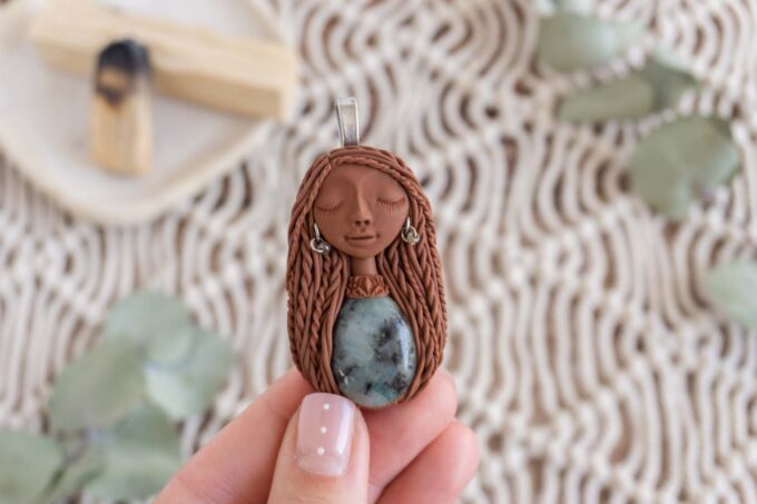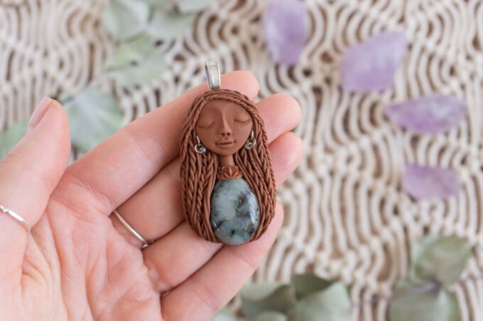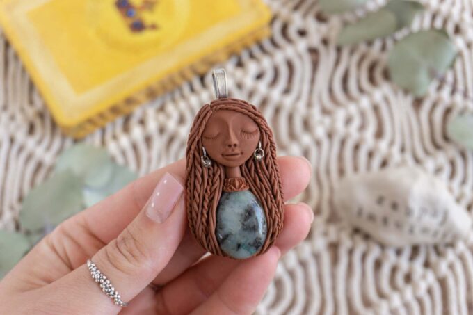 Čarobnica je izdelana iz polimerne gline. Vsak kos je unikaten in na voljo samo en kos. Izdelek lahko minimalno odstopa v barvnih niansah in detajlih, vendar se trudim, da bo vaš izdelek v naravi identičen opisu in fotografiji.