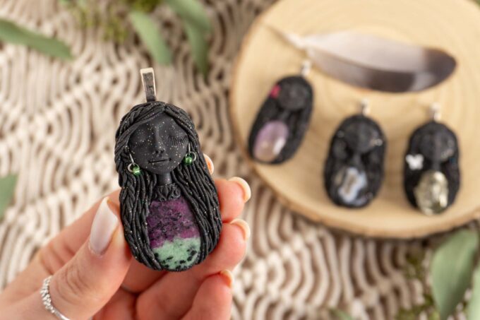 Čarobnice vsebujejo kristale in poldrage kamne. Vsak izdelek je unikaten in ima posebno zgodbo. Tako kot nas določeni kamni pritegnejo in se povežejo z našo energijo, tako tudi Čarobnice iščejo svoje lastnike. Čarobnico si izberete intuitivno ali pa na podlagi kamna, ki ga vsebuje.