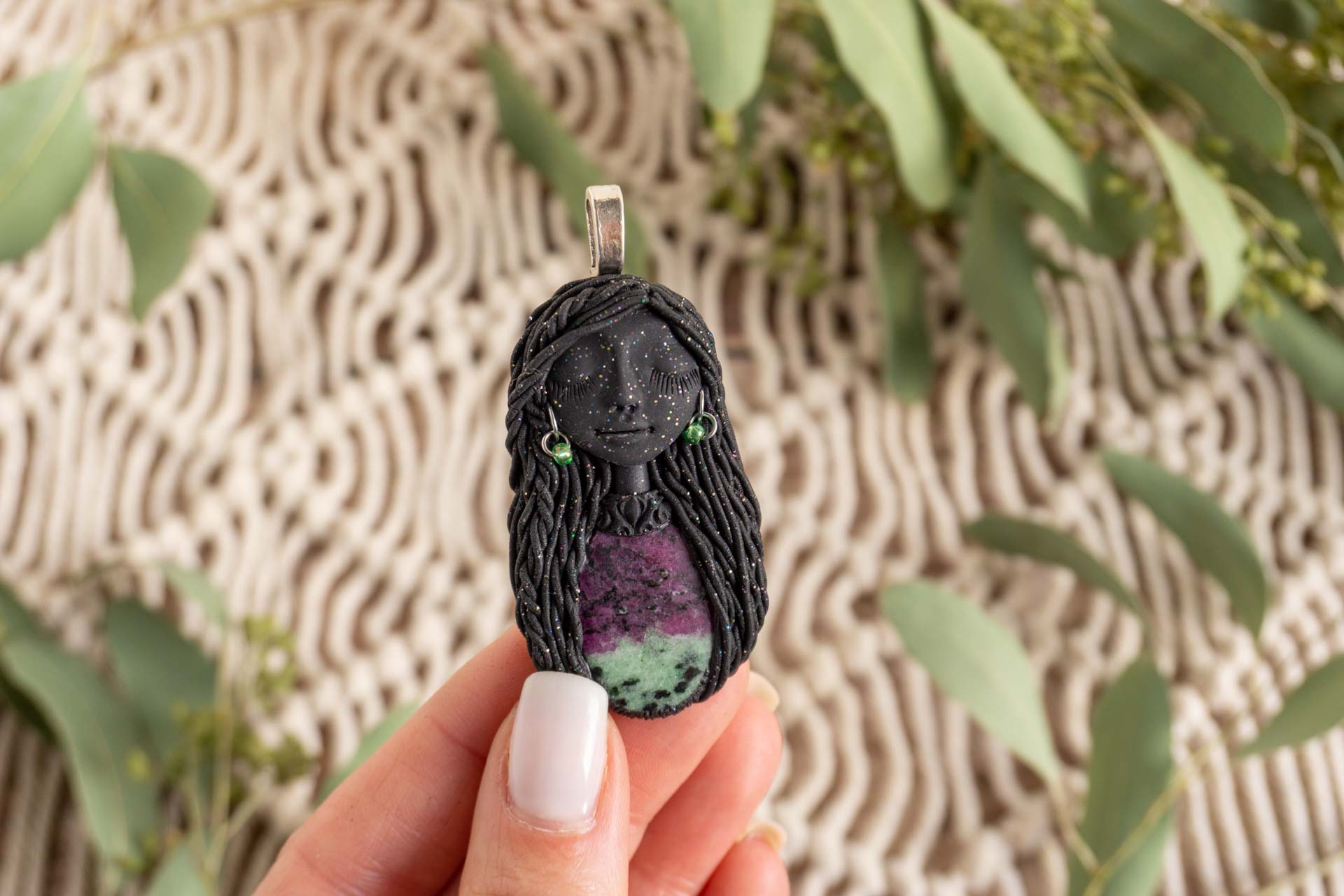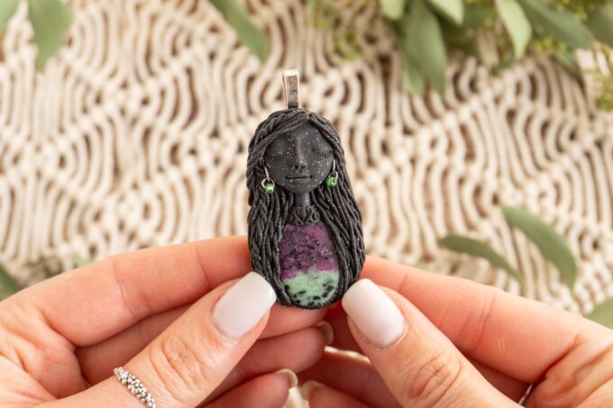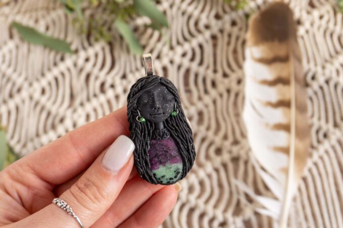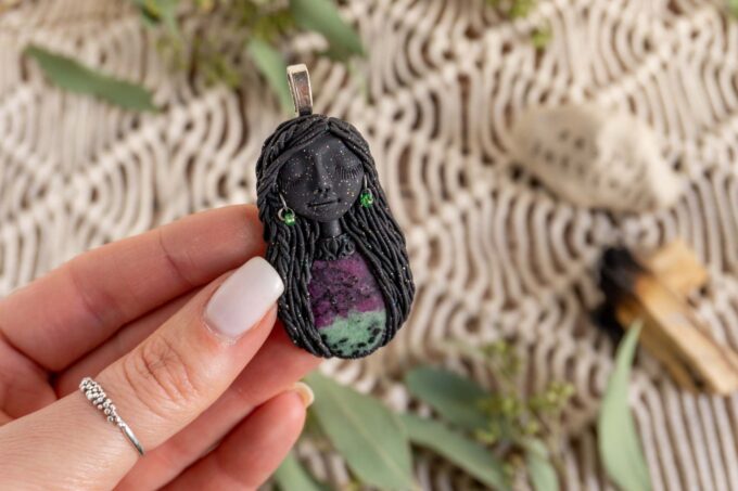 Čarobnica je izdelana iz polimerne gline. Vsak kos je unikaten in na voljo samo en kos. Izdelek lahko minimalno odstopa v barvnih niansah in detajlih, vendar se trudim, da bo vaš izdelek v naravi identičen opisu in fotografiji.