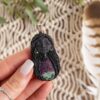 Zoisit-rubin vodi k miru, spokojnosti in lahko vam pomaga k raziskovanju svojih temeljev. Ugodno deluje na medsebojno usklajevanje telesa, duše in duha ter vzpostavlja sodelovanje med različnimi energetskimi nivoji. Tako uravnoveša energijo v notranjosti čaker, očistiti duševno stanje in pripravi pogoje za nadaljnjo pot. Prisotnost rubina v zoisitu omogoča večji svetlobni vpliv na dušo, krepi vodstvene sposobnosti in ustvarja notranje ravnovesje. Zoisit-rubin, ki ga nosimo s seboj deluje pomirjevalno, krepi občutek prizemljenosti in stabilnosti ter omogoča umirjeno sprejemanje impulzov naše duše.