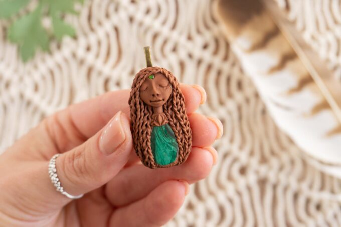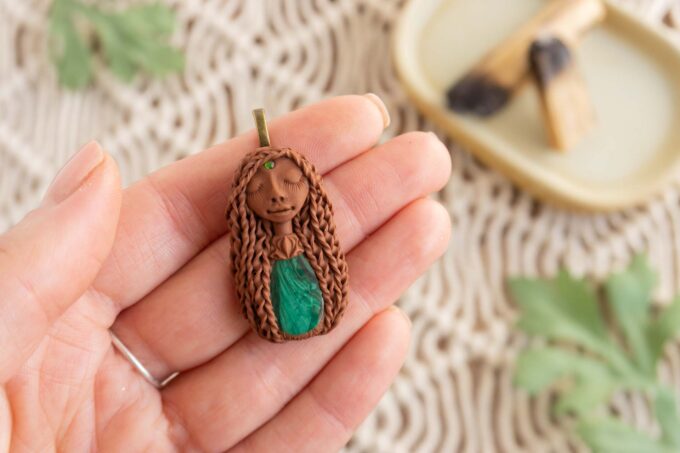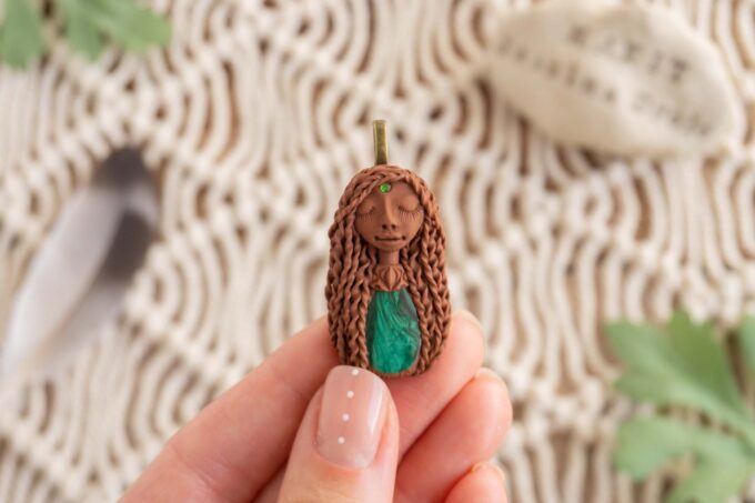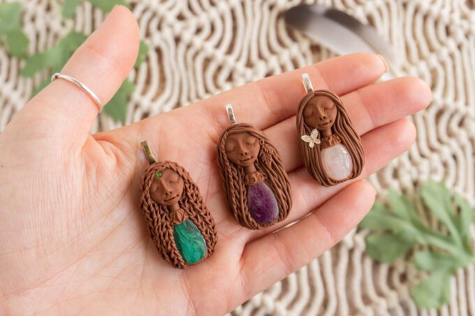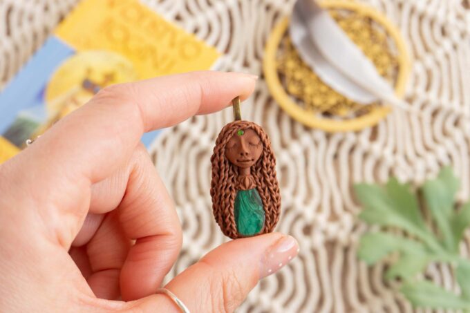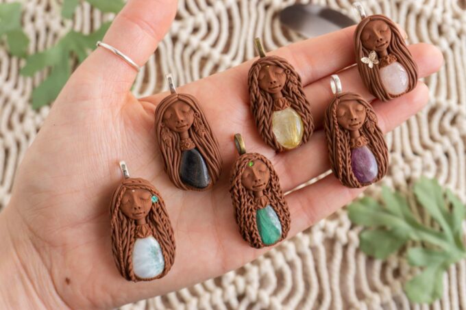 Vsaka Čarobnica je poimenovana po boginjah iz različnih obdobij, kultur in tradicij z vseh koncev sveta. Med izdelavo za vsako Čarobnico posebej povlečem orakelsko karto, ki nosi posebno sporočilo. Z vsako Čarobnico dobite torej še sporočilo, ki ga odkrijete šele, ko odprete paketek.