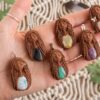 Čarobnico dobite povoščeni rjavi vrvici dolžine 42 cm (s cca 4cm podaljšano ketnico). V paketu pa dobite tudi ketnico dolžine 65 cm, tako da lahko nošenje izdelka prilagodite.