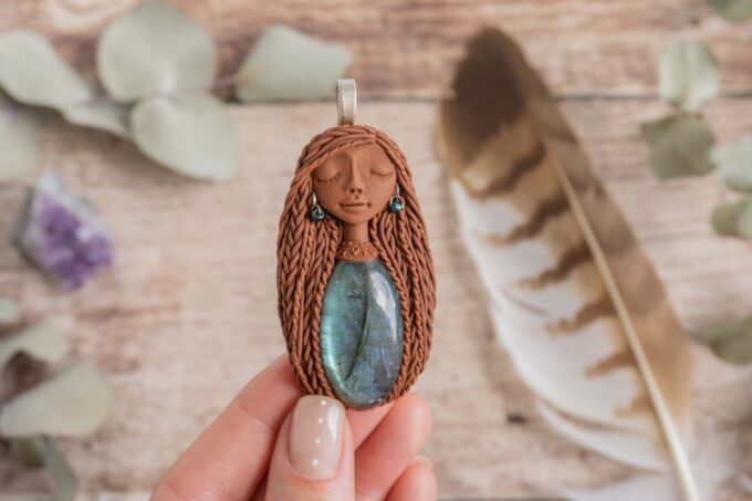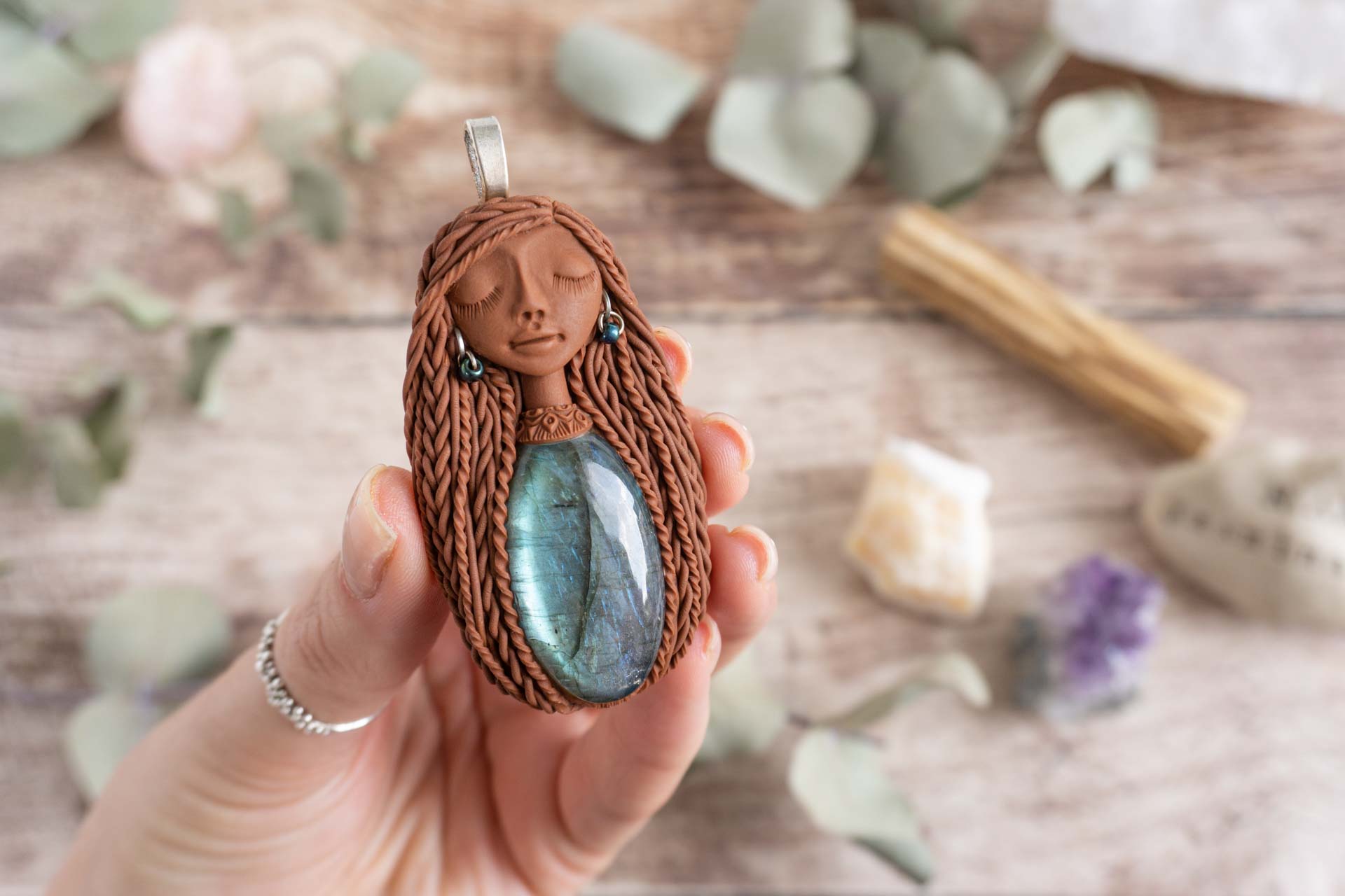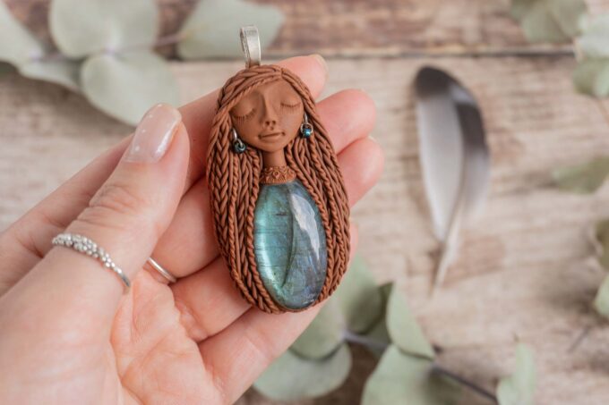 Čarobnica je izdelana iz polimerne gline. Vsak kos je unikaten in na voljo samo en kos. Izdelek lahko minimalno odstopa v barvnih niansah in detajlih, vendar se trudim, da bo vaš izdelek v naravi identičen opisu in fotografiji.