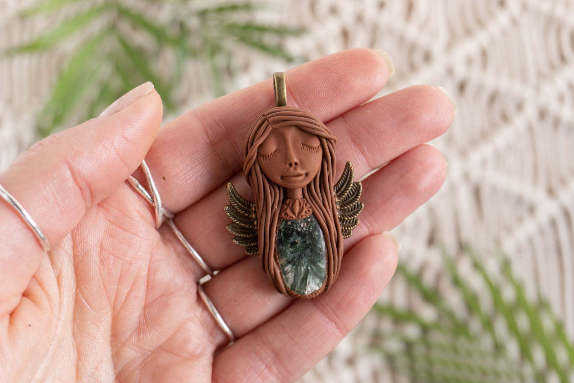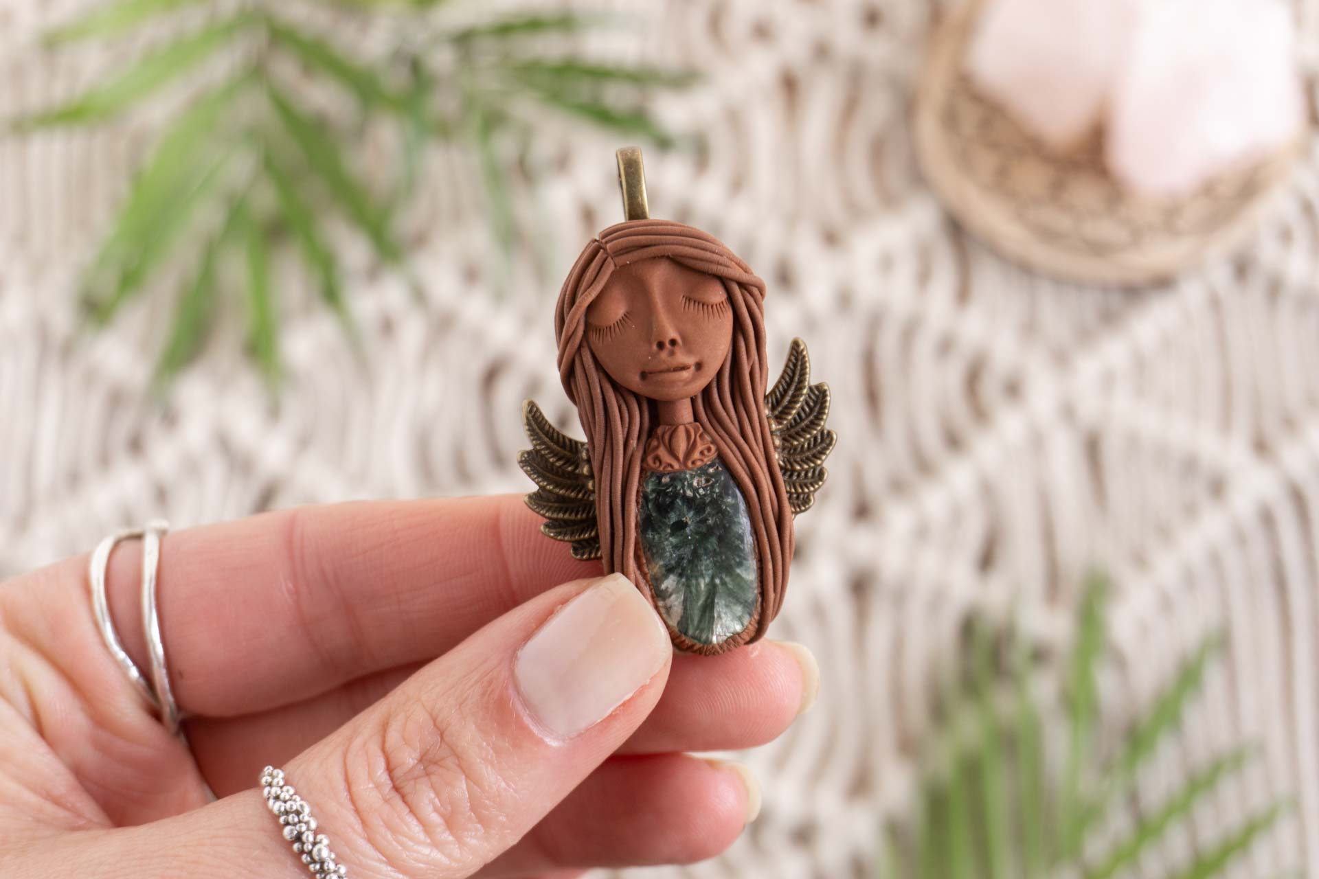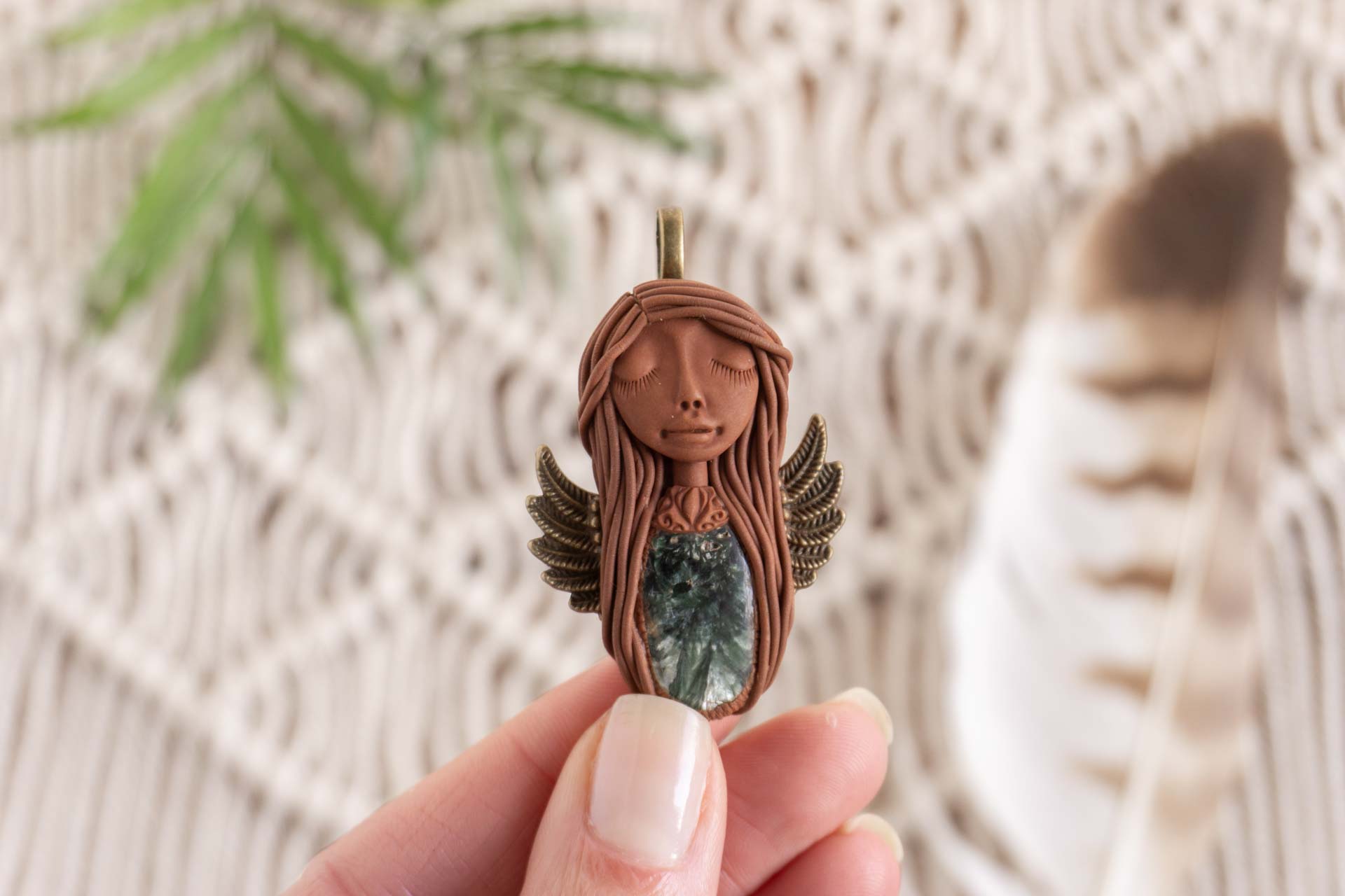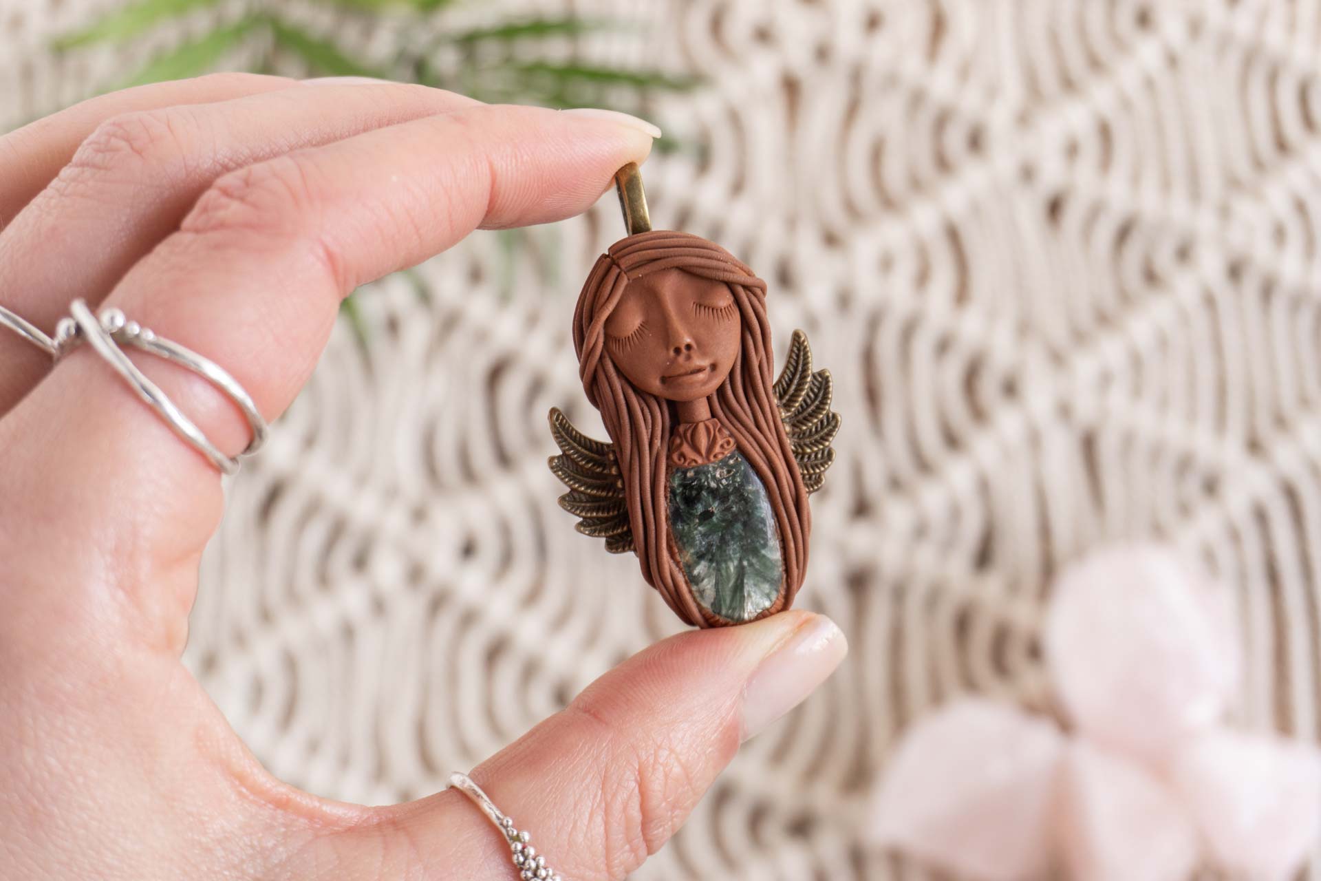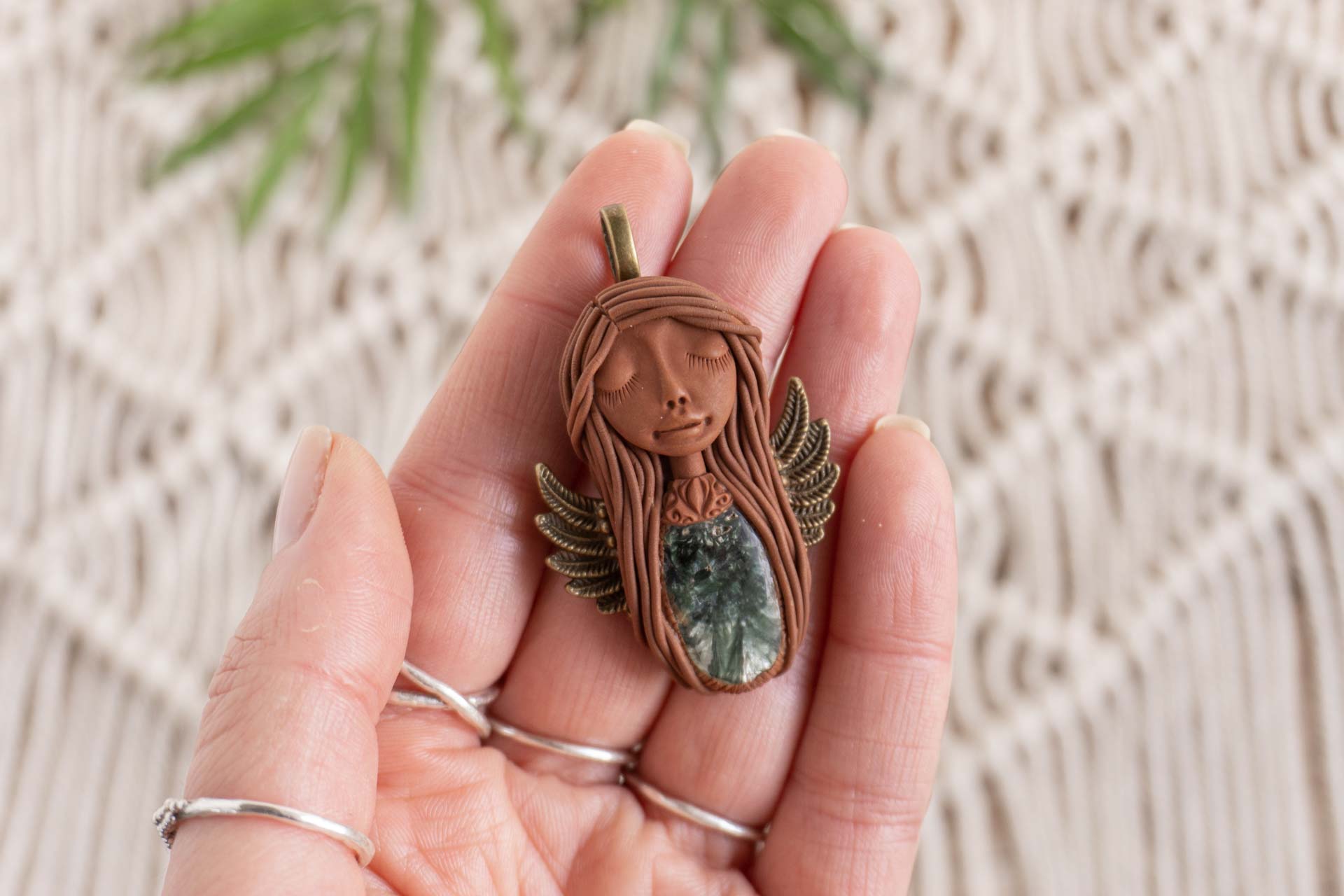 Čarobnica je izdelana iz polimerne gline. Vsak kos je unikaten in na voljo samo en kos. Izdelek lahko minimalno odstopa v barvnih niansah in detajlih, vendar se trudim, da bo vaš izdelek v naravi identičen opisu in fotografiji.