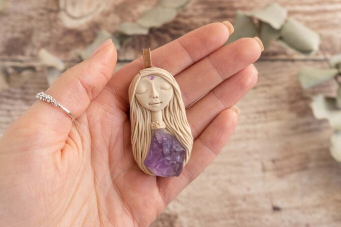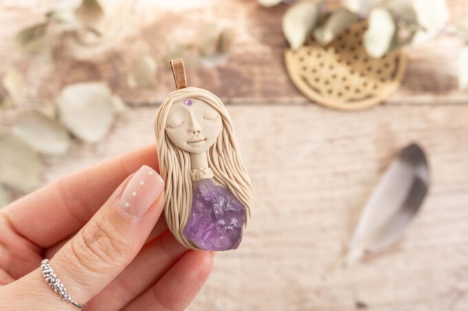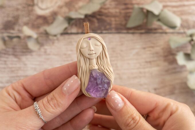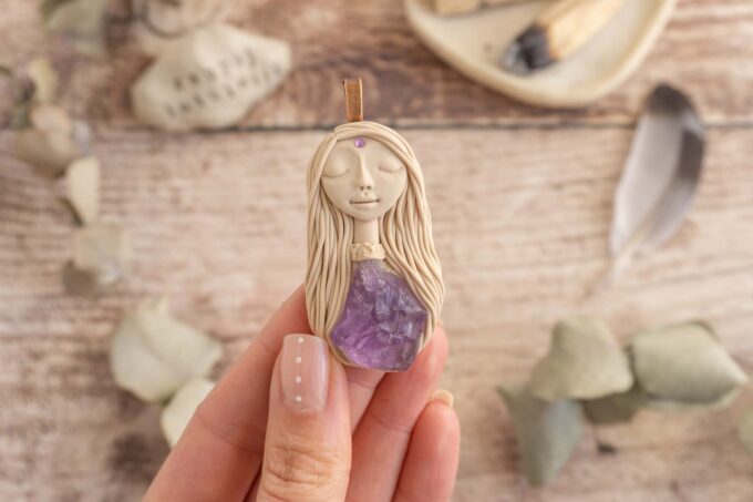Čarobnica je izdelana iz polimerne gline. Vsak kos je unikaten in na voljo samo en kos. Izdelek lahko minimalno odstopa v barvnih niansah in detajlih, vendar se trudim, da bo vaš izdelek v naravi identičen opisu in fotografiji.