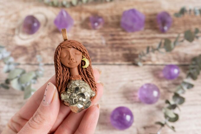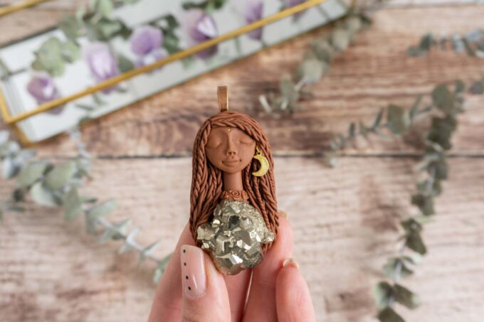 Čarobnica je izdelana iz polimerne gline. Vsak kos je unikaten in na voljo samo en kos. Izdelek lahko minimalno odstopa v barvnih niansah in detajlih, vendar se trudim, da bo vaš izdelek v naravi identičen opisu in fotografiji.