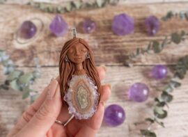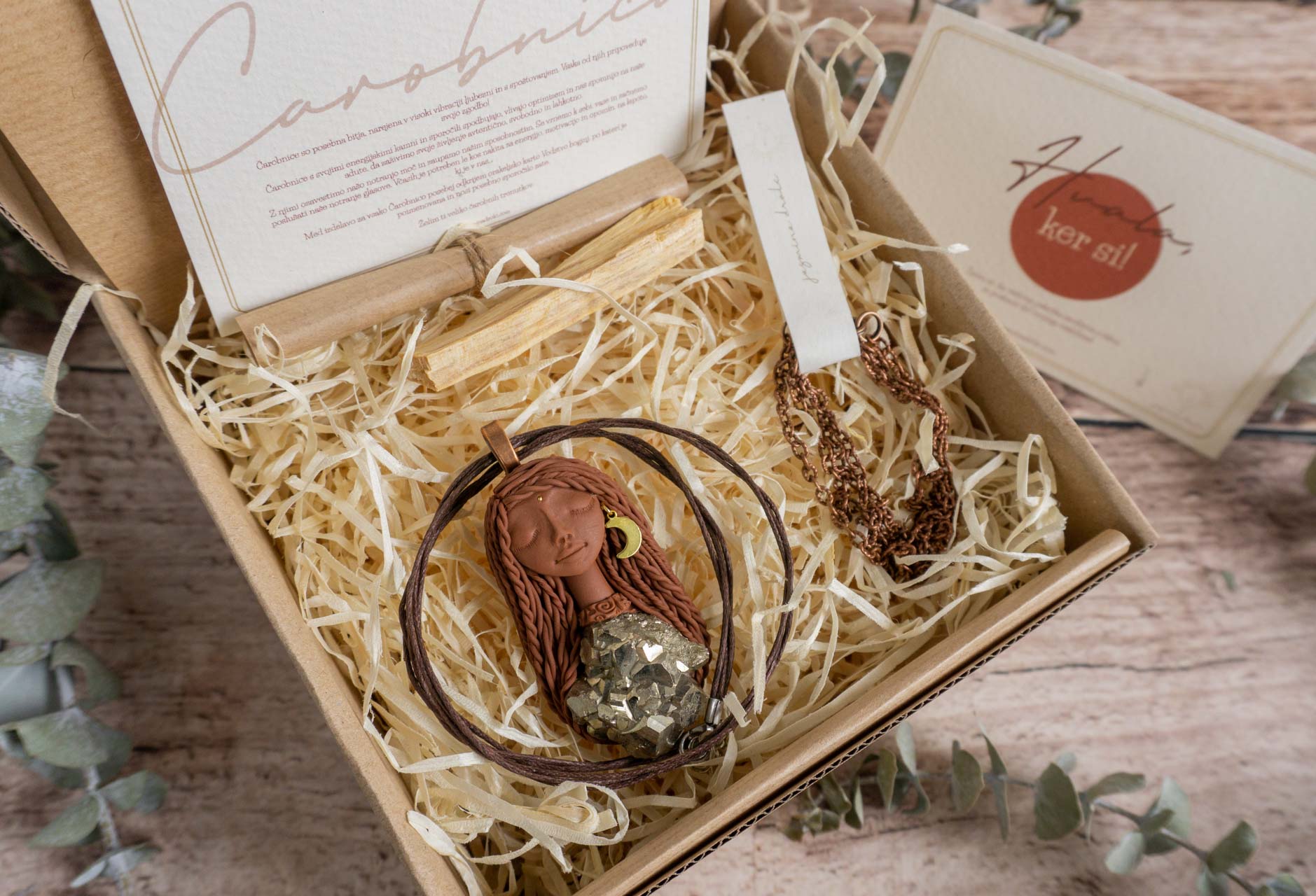 Vsaka Čarobnica je poimenovana po boginjah iz različnih obdobij, kultur in tradicij z vseh koncev sveta. Med izdelavo za vsako Čarobnico posebej povlečem orakelsko karto, ki nosi posebno sporočilo. Z vsako Čarobnico dobite torej še sporočilo, ki ga odkrijete šele, ko odprete paketek.