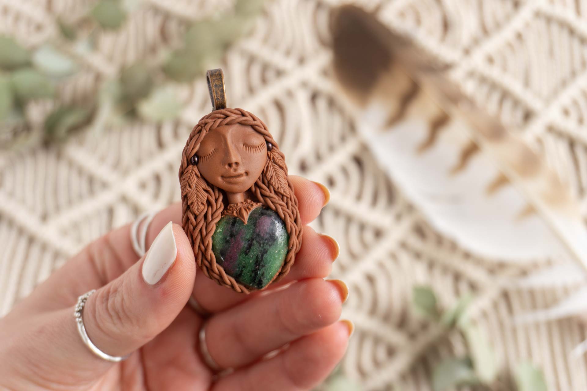 Čarobnica je izdelana iz polimerne gline. Vsak kos je unikaten in na voljo samo en kos. Izdelek lahko minimalno odstopa v barvnih niansah in detajlih, vendar se trudim, da bo vaš izdelek v naravi identičen opisu in fotografiji.