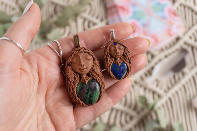 Vsaka Čarobnica je poimenovana po boginjah iz različnih obdobij, kultur in tradicij z vseh koncev sveta. Med izdelavo za vsako Čarobnico posebej povlečem orakelsko karto, ki nosi posebno sporočilo. Z vsako Čarobnico dobite torej še sporočilo, ki ga odkrijete šele, ko odprete paketek.