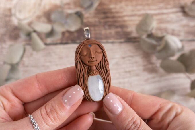 Čarobnica je izdelana iz polimerne gline. Vsak kos je unikaten in na voljo samo en kos. Izdelek lahko minimalno odstopa v barvnih niansah in detajlih, vendar se trudim, da bo vaš izdelek v naravi identičen opisu in fotografiji.