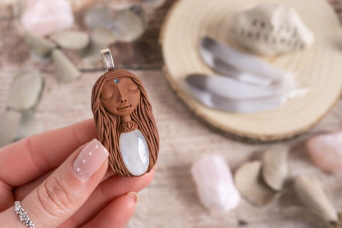 Vsaka Čarobnica je poimenovana po boginjah iz različnih obdobij, kultur in tradicij z vseh koncev sveta. Med izdelavo za vsako Čarobnico posebej povlečem orakelsko karto, ki nosi posebno sporočilo. Z vsako Čarobnico dobite torej še sporočilo, ki ga odkrijete šele, ko odprete paketek.