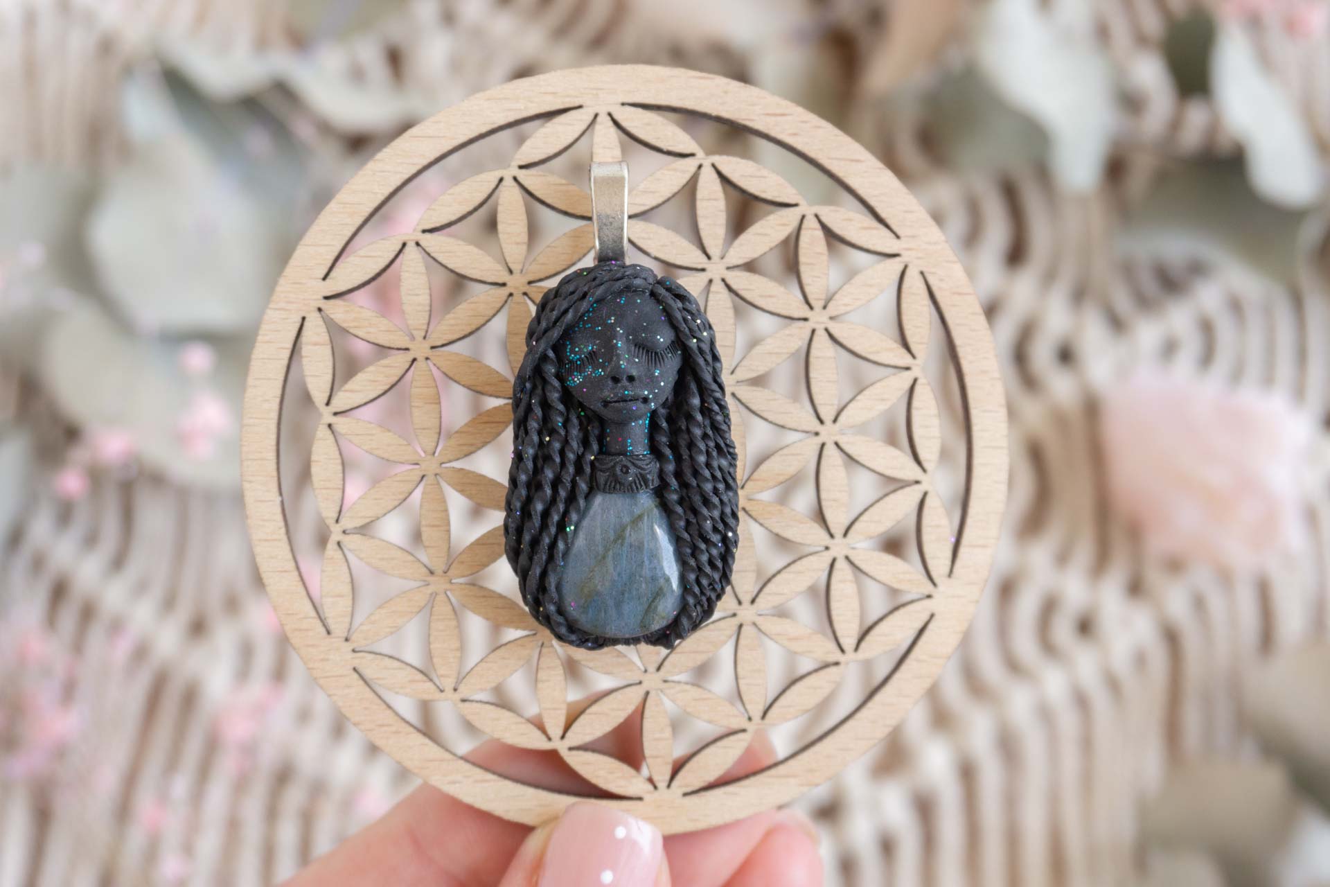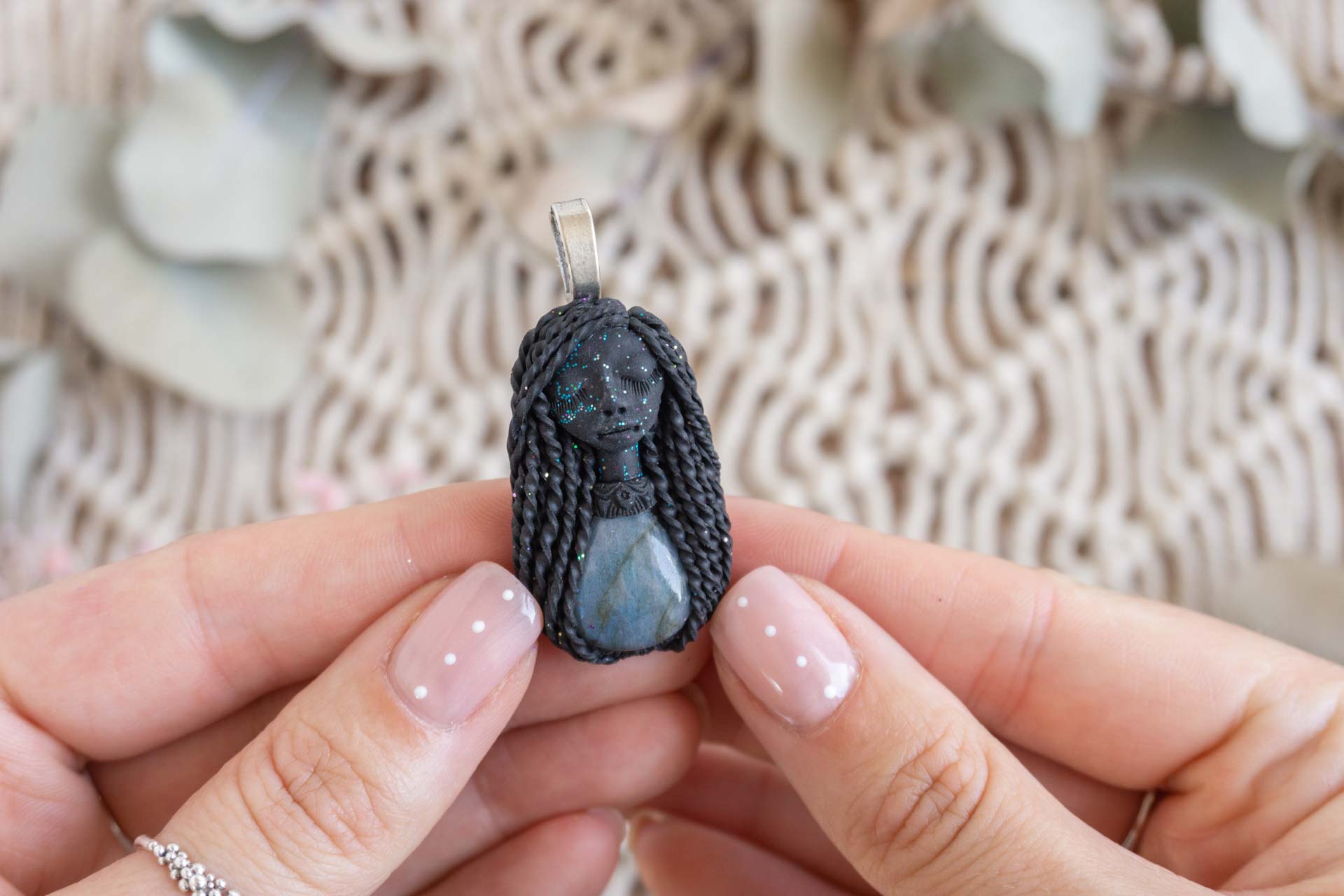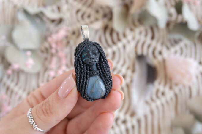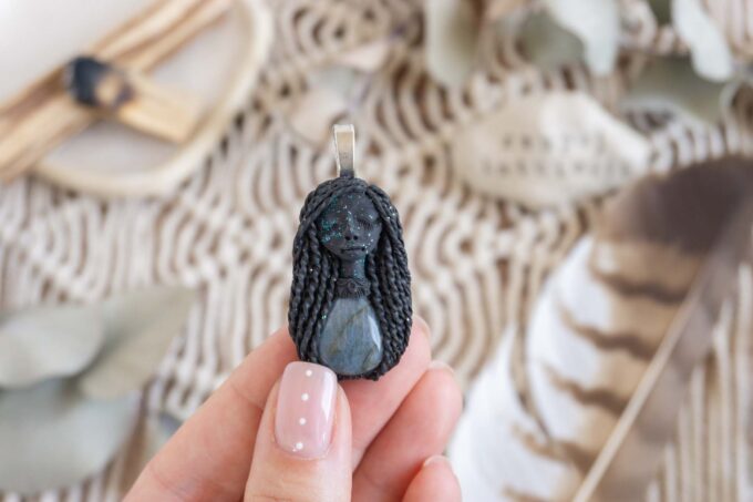 Čarobnica je izdelana iz polimerne gline. Vsak kos je unikaten in na voljo samo en kos. Izdelek lahko minimalno odstopa v barvnih niansah in detajlih, vendar se trudim, da bo vaš izdelek v naravi identičen opisu in fotografiji.